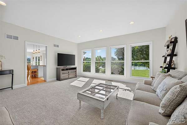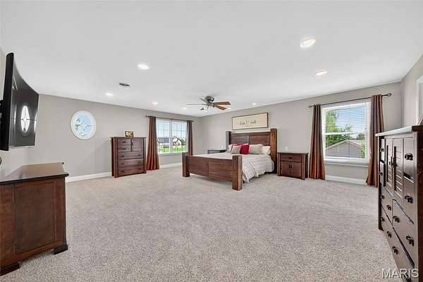 Welcome to your dream home! Enjoy breathtaking sunrises and unwind with picture-perfect sunsets right from your backyard. This spacious and beautifully designed residence offers the perfect blend of luxury, comfort, and functionality. The main floor features an elegant entry foyer, a private office with French doors, and a formal dining room with 3-piece crown molding. The open-concept Great Room flows seamlessly into a dream kitchen -- complete with solid surface countertops, custom cabinetry, and stainless steel appliances, and a convenient range for extra cooking space. Adjacent to the kitchen, you'll find a sunny breakfast room with a bay window and sliding doors leading to a covered patio overlooking the serene water. A cozy sitting room and a guest half bath complete this perfect entertaining space. Upstairs, you'll find a massive family room, four spacious bedrooms -- and a laundry room. One bedroom features a private ensuite bath, while two others share a Jack-and-Jill bathroom. The luxurious primary suite includes a sitting area and a spa-like ensuite with ceramic tile, separate tub, and walk-in shower. This beautiful home has all new fresh paint, new carpet, professionally resurfaced hard wood floors and much much more! Don't forget about the 3 acre stocked pond to fish at as well! This home has all the features you are looking for. So don't sit on this one, it will go fast!