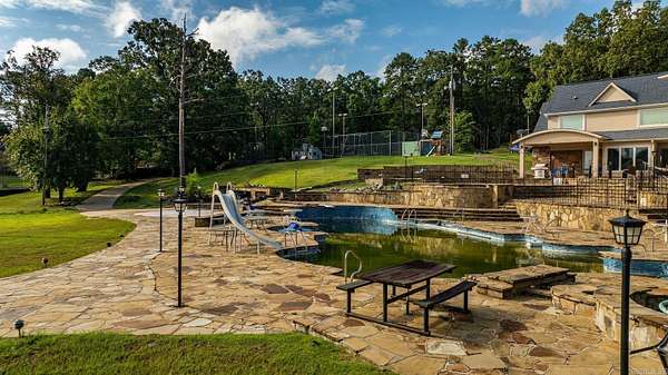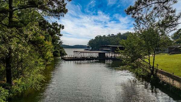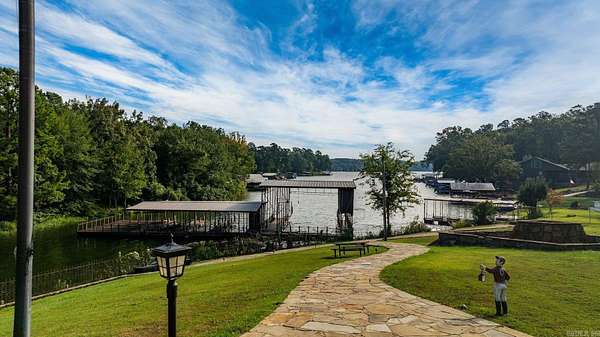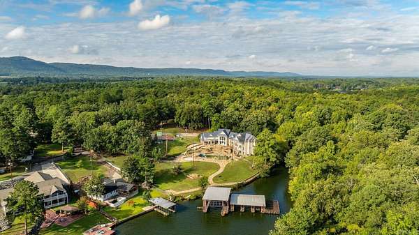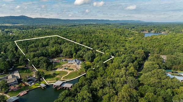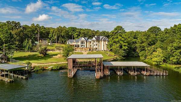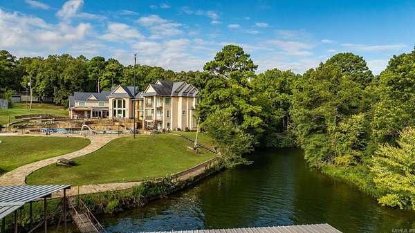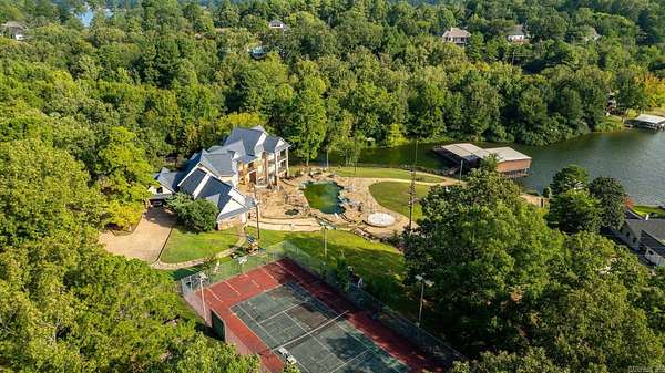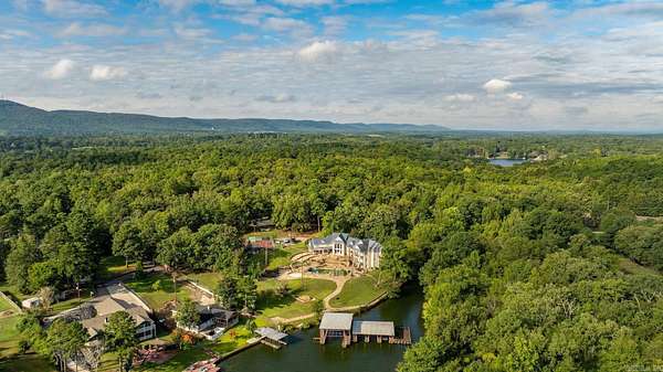 Extraordinary opportunity to own a storied property in a highly desirable Lake Hamilton location. This rare offering spans 7+ acres with approximately 695 feet of road frontage and 350 feet of lake frontage on the north facing shoreline. A canopy of mature trees creates a private, park-like setting, while the curved driveway and gated entry set the tone for a truly remarkable estate. The property features a 5-slip boat dock, a stone-lined gunite pool, and a tennis court, each waiting to be restored for future enjoyment. With sweeping lake views and endless possibilities for reimagining, this estate invites you to create a bespoke, legacy retreat for generations to come. Home to be sold "As Is."