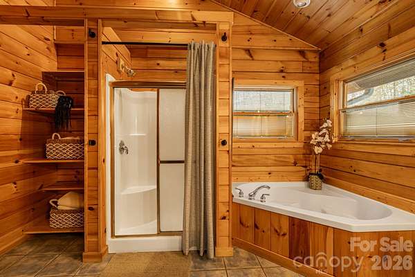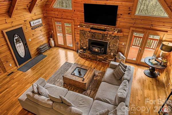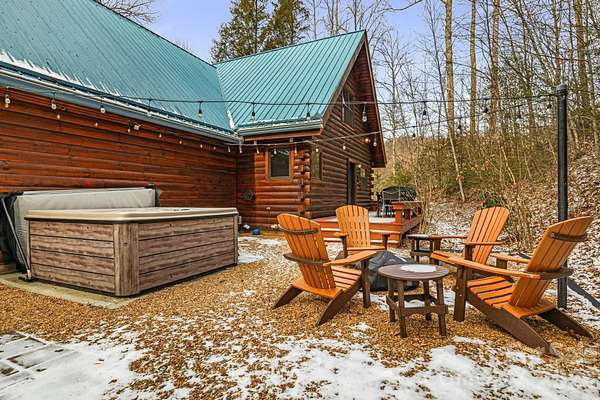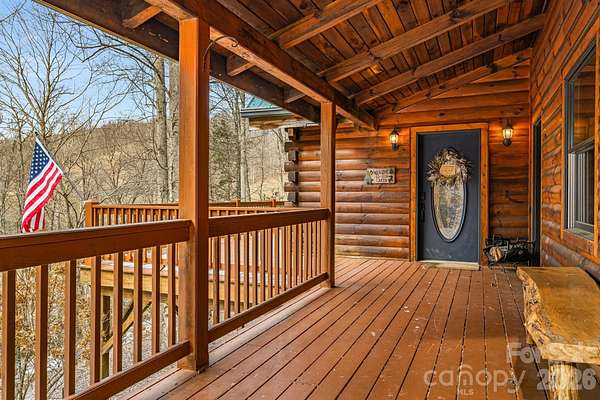 Tucked into a serene mountain setting along Big Laurel Creek, this distinctive property offers a rare opportunity to own two separate accommodations on one parcel-a spacious main lodge and a standalone historic log cabin-creating exceptional versatility for short-term rental or personal use. The main residence spans approximately 2,400 square feet and features a flexible sleeping layout with two bedrooms, two bathrooms, and a loft, along with a wraparound deck, private hot tub, fire pit, fireplace, and dedicated workout space. Thoughtful amenities such as a well-equipped kitchen, washer and dryer, and central heating and air enhance comfort year-round. Just steps away, the charming 1940s log cabin delivers a rustic, creekside experience complete with a bonus room, gas fireplace, electricity, incinerator toilet, fire pit, string-lit picnic area, and storybook covered bridge, offering a completely separate stay option. The peaceful creekside setting has also served as a backdrop for small, intimate gatherings, making it ideal for quiet celebrations, retreats, or meaningful moments. With private creek frontage and close proximity to the Appalachian Trail, Hatley Pointe Ski Resort, tubing, and Asheville, this property stands out as a highly marketable mountain retreat with multiple income streams and broad year-round appeal.