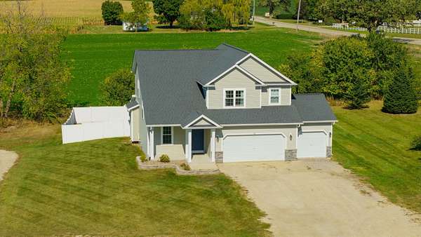 Est $3,675/moShowings start 10/17/2025. Beautiful 3 bedroom, 3.5 bathroom home on 2.48 acres! Enjoy an open concept layout with quartz countertops, large pantry, and bright living spaces. Upstairs laundry adds convenience. Basement boasts a full bathroom and an egress window which would be perfect for a 4th bedroom, and rec room. Spacious 3-car garage plus a 48x26 outbuilding ideal for storage, hobbies, or a workshop. Fenced yard offers privacy and space to play. A perfect blend of modern comfort and country living, close to town amenities. Move-in ready and meticulously maintained! Every detail has been designed for easy living and lasting value!