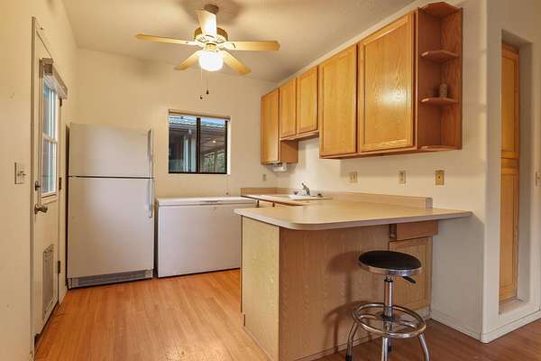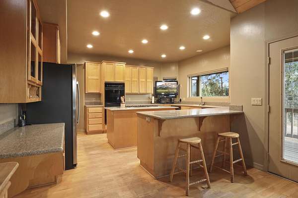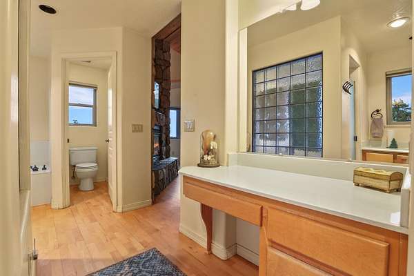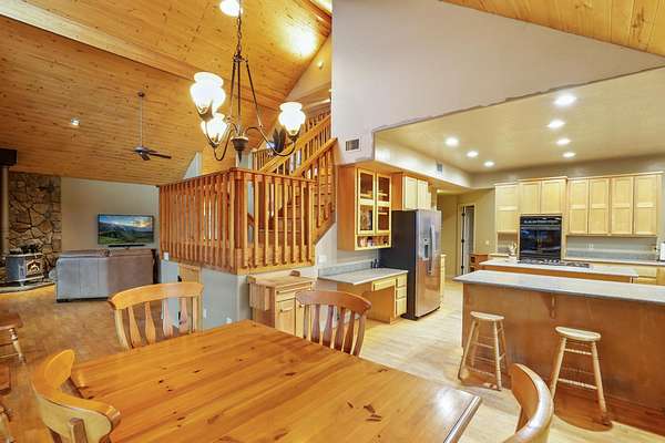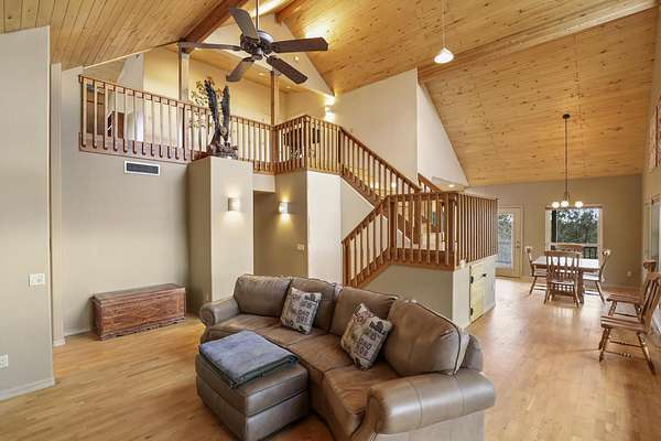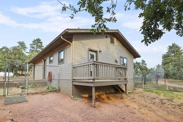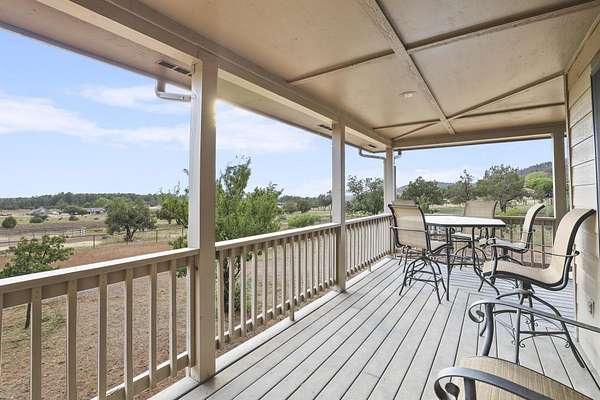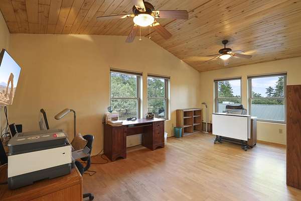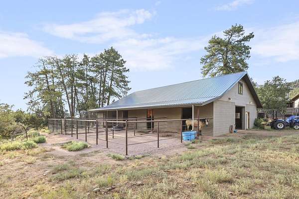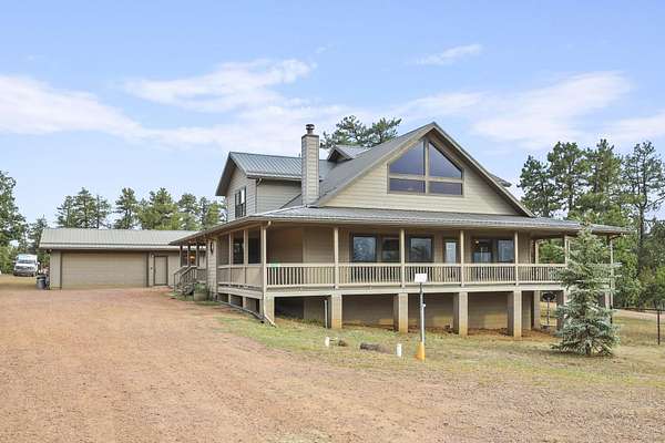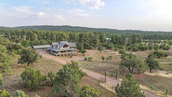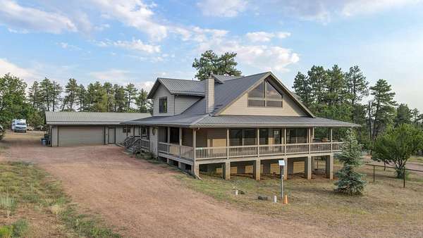 Amazing Horse Property on 13.19 Acres! This rare find offers the ultimate in country living with 13.19 acres of flat, usable land that borders USFS-perfect for horses, livestock, or simply enjoying the space and privacy of rural life. The 2,600 sq ft main house features 3 bedrooms, 2 full bathrooms, and a massive loft ideal for extra sleeping space, a home office, or a game room. The open-concept kitchen boasts a large island and a spacious walk-in pantry, making it perfect for gatherings and everyday living. The great room is filled with natural light and opens to a wraparound covered deck with breathtaking mountain views. Cozy up by the wood-burning stove and enjoy the charm of hardwood floors, ready to be refinished to your style. The oversized laundry/mudroom includes a dog wash station for convenience. Upstairs, the private primary suite features a gas fireplace, jetted tub, and his-and-her vanity areas, offering a peaceful retreat. A detached 2-car garage includes a 450 sq ft guest quarters with a private bathroom-ideal for visitors, extended family, or potential rental income. Equestrian Features: The barn is truly exceptional-40x60 with 3 horse stalls, a hay storage area, a large tack room, and a loft for additional storage. Outside, you'll find a round pen, stock pond, and excellent pasture land. There's even room to add an arena if desired-the land is highly usable and flat. HOA is for telephone lease from Forest Service $9.00 year.