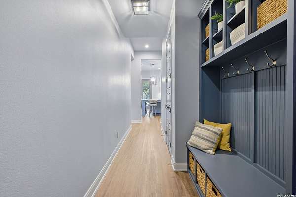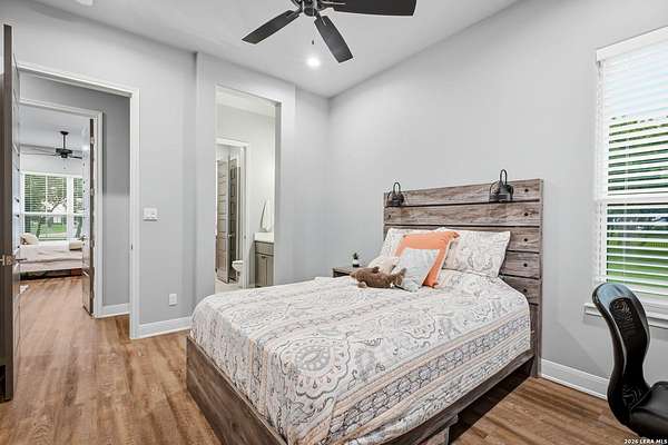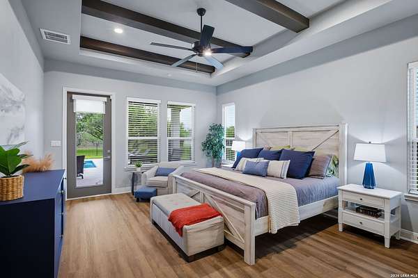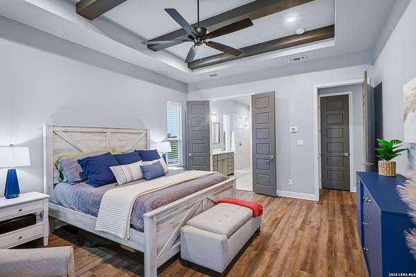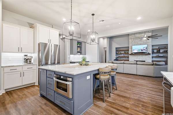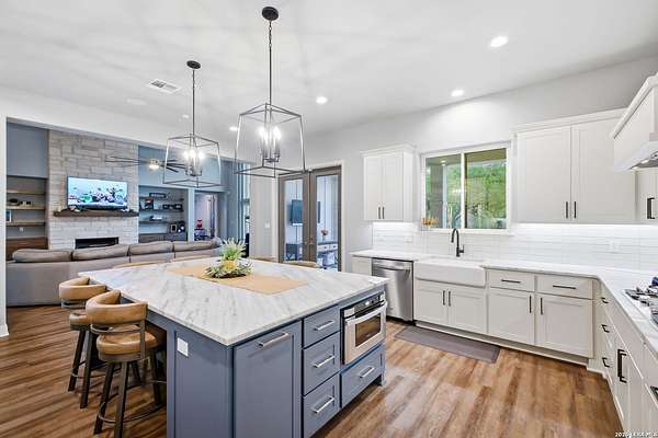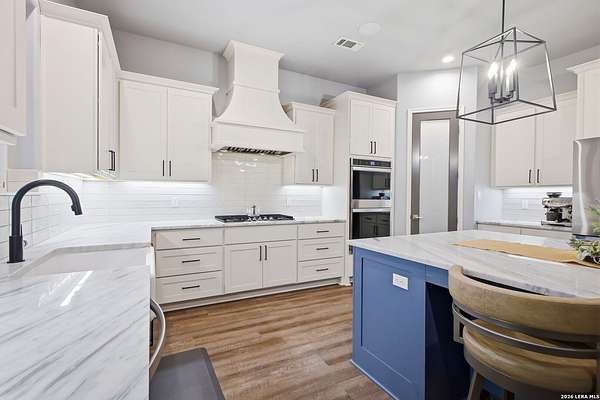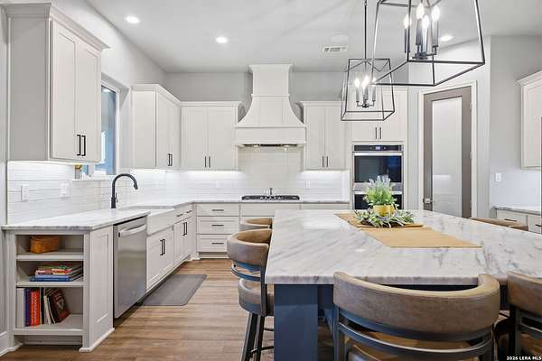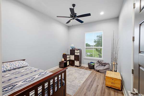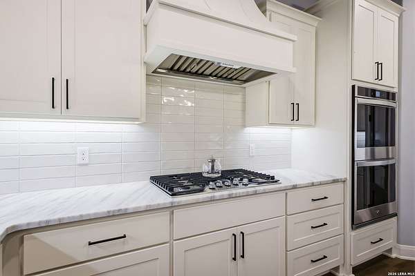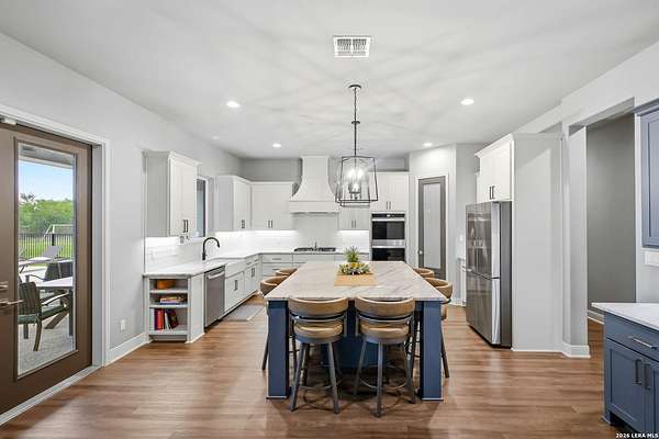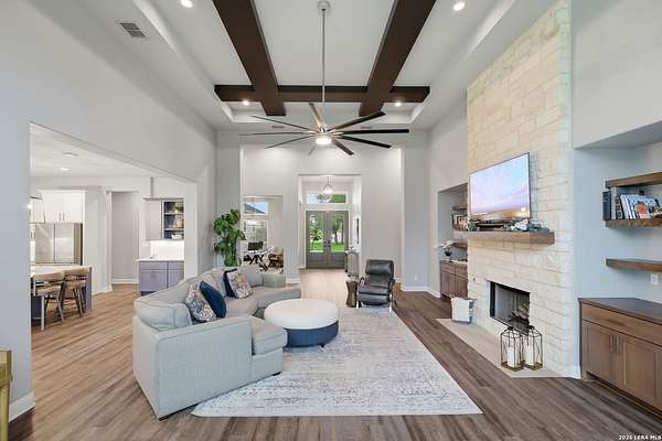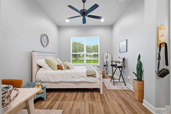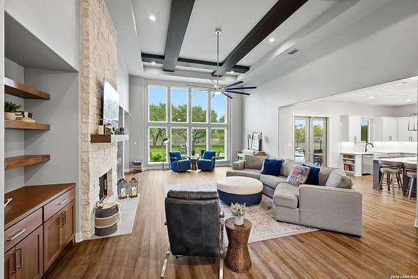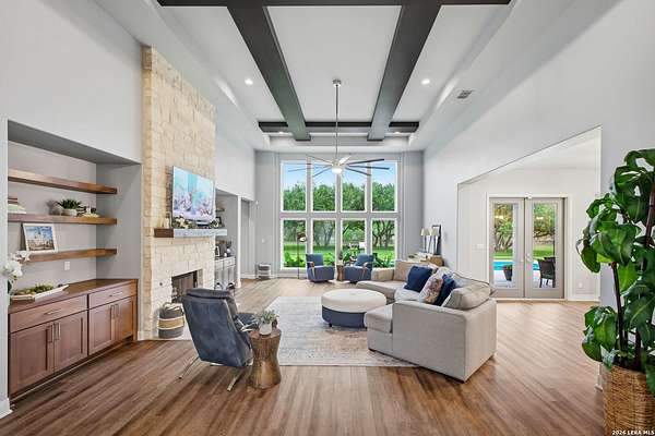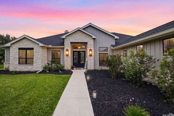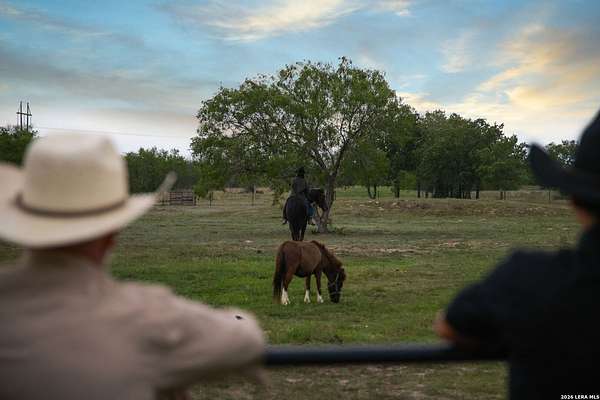 Built in 2022 and designed by Steve Klein Custom Homes, this turnkey ranchette sits on 5.01 acres in Victoria County-just 12 minutes from Victoria, 40 minutes from the Texas coastline, and approximately 2 hours from both San Antonio and Houston. Offering a seamless blend of refined living and equestrian lifestyle, the beautifully landscaped homesite is lined with mature, well-maintained oak trees to the left, while open acreage to the right provides ample space for horses to roam. The property is cross-fenced, and the fully landscaped homestead features irrigation, creating a lush, barefoot-friendly setting. The lawn is presented exactly as it is, showcasing the true condition of this meticulously maintained outdoor space. A secondary driveway leads to a 1,200-square-foot insulated metal workshop with electricity, currently configured as an equestrian retreat with two horse stalls. The building includes two pass-through roll-up doors and an attached covered carport-ideal for storing a boat, tractor, or ATV-while offering flexibility for a variety of uses. Inside, the home offers 3,496 square feet of thoughtfully designed, open-concept living space. Vaulted ceilings and large windows fill the home with natural light, creating a bright and welcoming atmosphere throughout. The spacious main living area flows seamlessly into the kitchen, making it ideal for both everyday living and entertaining, while a cozy fireplace anchors the space for cooler Texas evenings. The kitchen is designed to impress with a farmhouse sink, oversized island with seating for six, stainless steel built-in appliances, 5 burner gas cooktop, abundant cabinetry, walk-in pantry and generous counter space. Thoughtful storage is found throughout the home, enhancing both functionality and convenience. The owner's retreat offers a private getaway, featuring coffered ceilings with exposed beams and direct access to the covered patio and pool. The en-suite bath includes a beautifully designed walk-in shower, separate vanities, and a spacious walk-in closet complete with a built-in dresser and additional storage. Step outside to a resort-style backyard featuring a fully fenced saltwater gunite pool with ambient lighting and a custom water feature-perfect for relaxing or entertaining. The covered patio extends the living space outdoors and includes a built-in TV, ceiling fan, and a speaker system that flows seamlessly from the interior to the patio for year-round enjoyment. Additional highlights include two HVAC systems, two tankless water heaters, an aerobic septic system, and a Culligan water softener. A practical mudroom and laundry area are conveniently located just off the 3-car garage, adding everyday functionality and organization. Gently lived in and exceptionally well maintained, this property reflects true pride of ownership and offers a comfortable blend of modern convenience and relaxed country living. Thoughtfully designed with everything already in place, all that's left is to move in and make it your own.