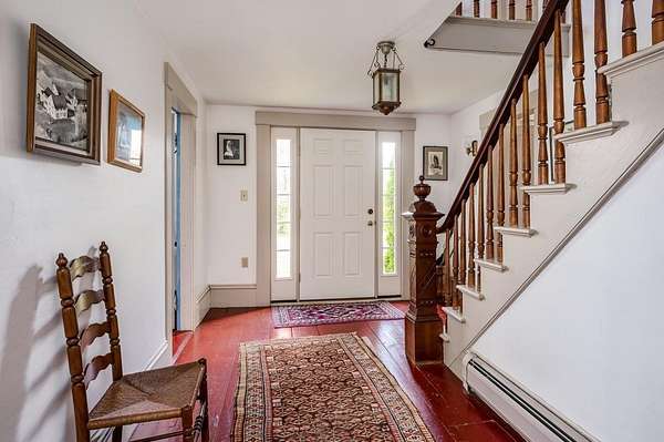Oh the Views! Perfectly sited, this Quintessential 1780 Colonial Farmhouse is framed by lovely landscaping & timeless New England charm. This exceptional homestead includes two separate parcels: 4.5 country acres surrounding the home plus an additional 3.06 acres w/ vintage barn just across the street. Brimming with charm & character, this expansive home has been thoughtfully updated & improved throughout. The 4 season porch serves as an ideal mudroom & a welcoming place to unwind. A recently renovated kitchen features new appliances, cabinetry & quartz countertops, and open seamlessly to a sun-filled family room with informal dining and scenic backyard views. The main level also offers a classic dining room, living room, private office (or potential bedroom), fully bath, second mudroom, and a pantry/canning area leading to the carriage house & bonus room. Upstairs, you'll find a spacious primary suite, a 2nd ensuite bedroom, a 3rd bedroom & bath, and a sunlit office or 4th bedroom. Additional highlights include abundant closet space, a convenient laundry area & charming front & back staircases. Beautiful details shine throughout - moldings, wide pine floors and a blend of informal living spaces across 4,156 sq ft. The carriage house/garage offers ample space for vehicles, a workshop & future expansion. This property has been meticulously maintained w/updated systems. Step outside from the family room onto a charming stone patio overlooking "froggy pond", gardens, red maples, fruit trees & more. The vintage barn, sold "as is" offers incredible potential is sited on the separate parcel. With endless possibilities, farm equestrian property, multigenerational home, ADU, Bed & Breakfast, event venue - this peaceful and picturesque homestead is ideal for living, working and playing.