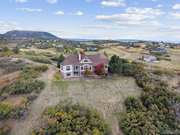 Exquisite Quality Custom Ranch with Fully Finished Walkout on 9.10 Wood Acres, Fully Remodeled and Just Waiting For You! This Gorgeous House Boasts a Wonderful Floorplan Built to Incorporate the Views and Setting. Totally Private and Secluded, High Upon the Hill, You Will Feel Like You Live in the Mountains Without Doing the Drive. So Functional - There are Three Bedrooms on the Main Level Plus Two Additional Spare Bdrms in the Lower Level. The Great Room Beckons You with The Luscious Hillside View, Open to the Dining Room, Kitchen and Bonus Room for Whatever Your Choice of Use May Be. The Primary Suite is Very Private with a Large Sitting Room, Walk-in Closet, and Fully Remodeled 5 Piece Bath Which is Stunning. The Kitchen Will Please the Most Discriminating of Chefs with the Professional Range, Island, and Design. The Lower Level is Perfect for Entertaining with the Bar Area Open to the Family Room/Billard Area and a Huge Media/Home Theater Room Complete with the Screen and Projector. Don't Miss the Wine Cellar (needs shelving) or Could be Utilized However Your Wish. Along with 2 Large Spare Bedrooms, There is an Additional Room Which Could be an Office, Exercise, Hobby or Whatever Your Heart Desires. Don't Miss the Fully Finished Heated Garage with Storage Attic Space. Outside You Will Find an Array of Vegetation to Enjoy and a Fenced Area for Pets and Small Children. Wildlife Abounds Here in this Mountain Setting. There are so Many Updates to this Home it is Impossible to List Them All. Total Move In Condition From Top to Bottom. Balanced Sized Rooms, Light and Bright, Full of Ambience. No Need For Window Coverings Here. Low Traffic Street, County Maintained Roads, No Special Metro District, High Speed Internet, Minutes from the Soon to be Completed New Costco, King Soopers, Commercial Area and I-25 Exchange Being Completed, Yet Worlds Away. Quiet, Peaceful, You Can Breathe Here. Come and See For Yourself. You Will Not be Dissapointed.