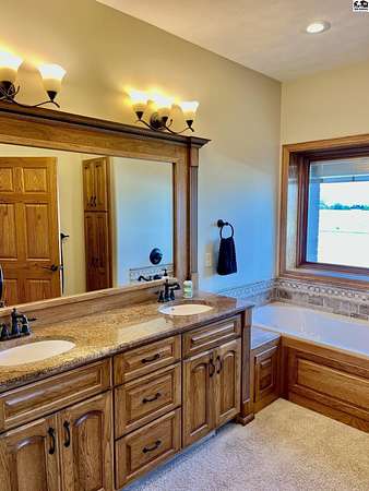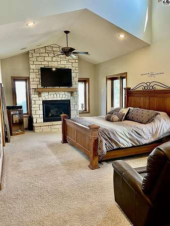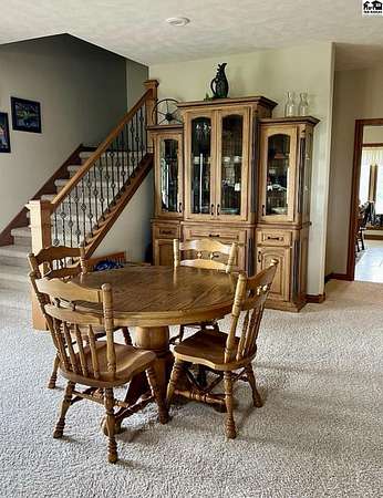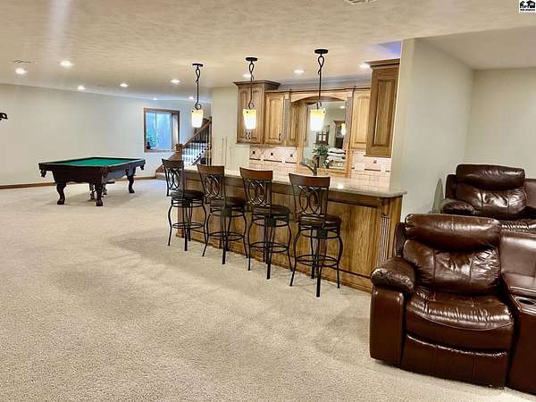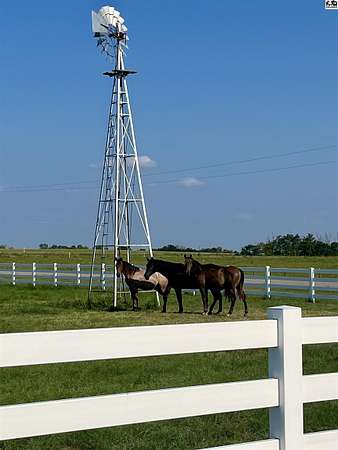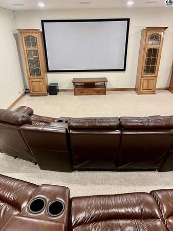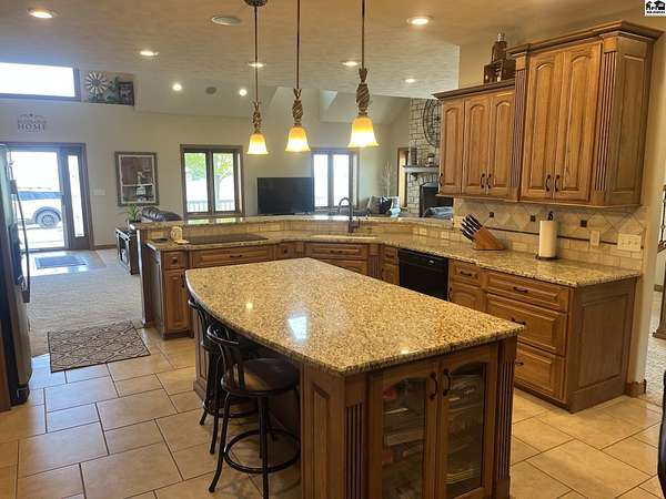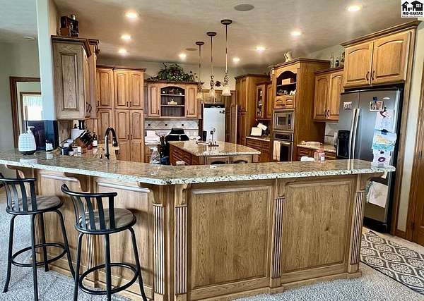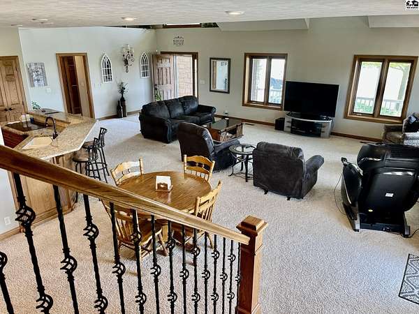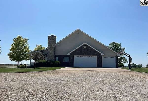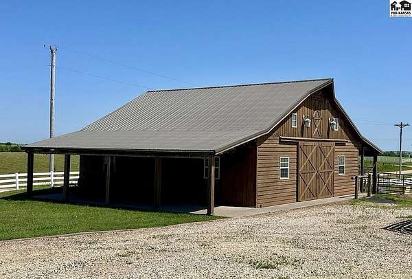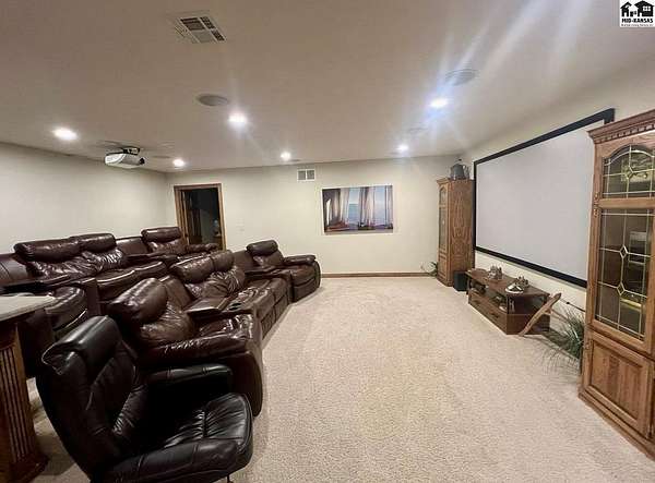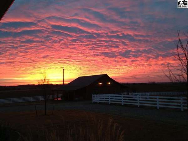 Welcome to this stunning one-owner custom-built home nestled on 38.27 serene acres in Hutchinson. Thoughtfully designed&meticulously maintained, this property offers a rare combination of luxury, functionality & peaceful country living, all just minutes from town. Step inside to discover an abundance of natural light, beautiful Pella windows & incredible handcrafted Bontrager custom, solid wood cabinetry with soft-close drawers & rollout shelving. The spacious kitchen features granite countertops, ample storage, perfect for entertaining. Every bedroom is oversized & features walk-in closets, plus the entire home is wired with surround sound, a Beam central vacuum system & a security system for added peace of mind. Enjoy cozy movie nights in your very own 8-person home theater, with surround sound & projector, or host gatherings in the fully finished basement complete with a wet bar & an additional refrigerator. Additional highlights include a relaxing sunroom that can double as formal dining, private back patio with hot tub, impact-resistant composition roof (only 6 years old), two brand new Lift Master garage door openers, a 65x80 shed, 60x60 metal shed & a charming 30x40 cedar barn. Enjoy the scenic pond, vinyl fencing & wide open spaces, perfect for livestock, recreation, or just enjoying nature. This one-of-a-kind property offers the ultimate blend of custom craftsmanship, modern amenities, and quiet country charm. Come experience the lifestyle you've been dreaming of!