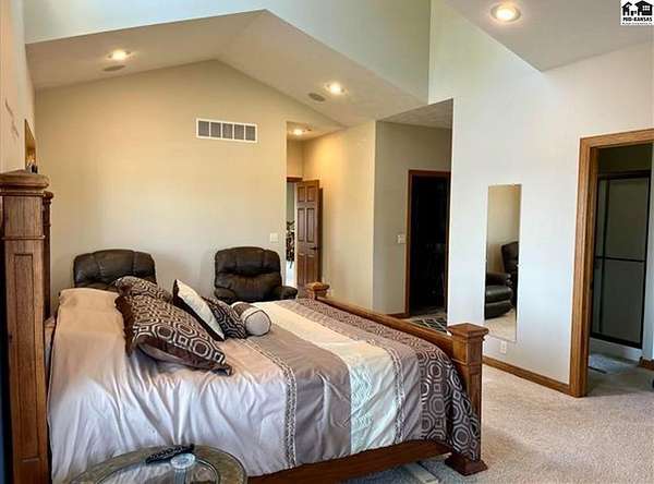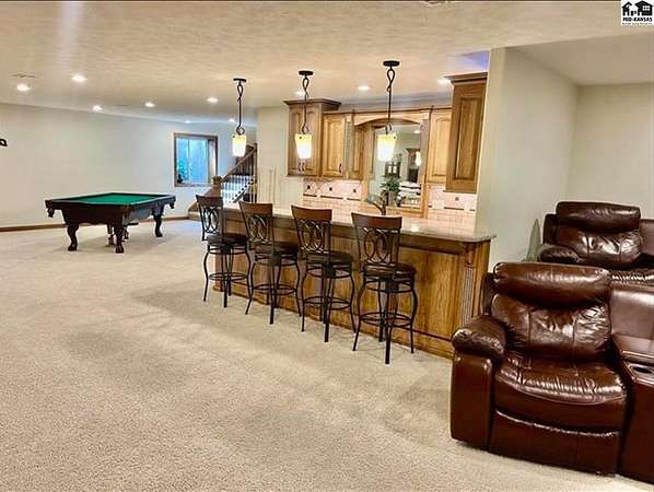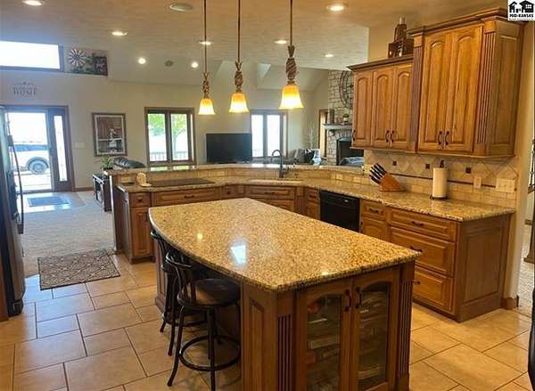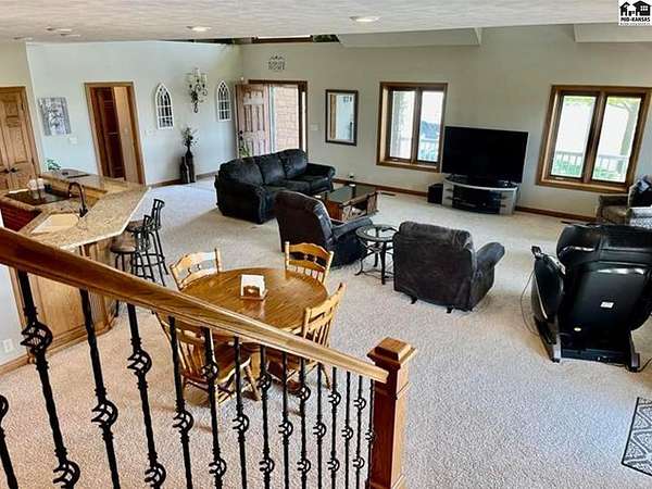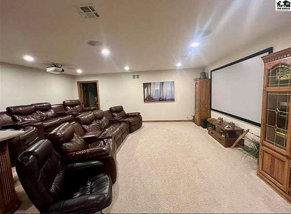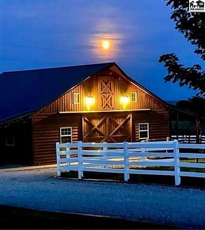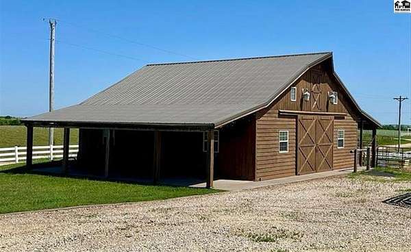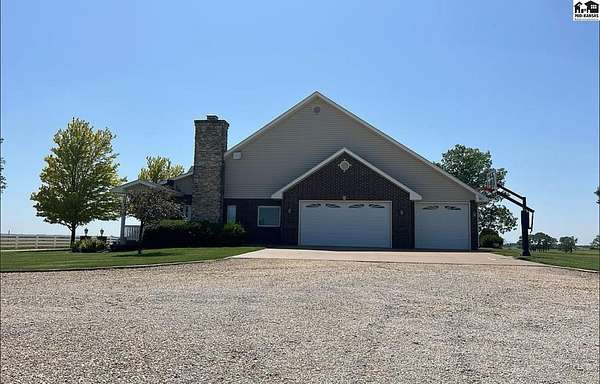 Recently purchased & back on market due to buyers change in plans, home remains in excellent condition! Welcome to this stunning one-owner custom-built home nestled on 38.27 acres. Thoughtfully designed, this property offers a rare combination of luxury, functionality & peaceful country living, minutes from town. Step inside to discover an abundance of natural light, beautiful Pella windows & incredible handcrafted Bontrager custom, solid wood cabinetry with soft-close drawers & rollout shelving. The spacious kitchen features granite countertops, ample storage, perfect for entertaining. Every bedroom is oversized & features walk-in closets, plus the entire home is wired with surround sound, a Beam central vacuum system & a security system for added peace of mind. Enjoy movie nights in your own 8-person home theater, with surround sound & projector, or host gatherings in the fully finished basement complete with a wet bar & an additional refrigerator. Additional highlights include a relaxing sunroom that can double as formal dining, private back patio with hot tub, impact-resistant composition roof (only 6 years old), 2 brand new Lift Master garage door openers, a 65x80 shed, 60x60 metal shed & a 30x40 cedar barn. Enjoy the scenic pond, vinyl fencing & wide open spaces, perfect for livestock, recreation, or just enjoying nature. This one-of-a-kind property offers the ultimate blend of custom craftsmanship, modern amenities, and quiet country charm.