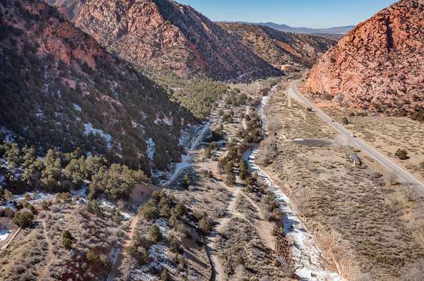This property offers a rare opportunity for potential subdivision in one of the most unique and picturesque areas of Southern Utah. With level areas primed for development, the location provides convenient highway access and is equipped with a variety of amenities. A parking lot, a walking bridge crossing the scenic creek, and a waterfall creates a welcoming environment for visitors. Additional features include tranquil sitting areas, a walking path perfect for leisurely strolls, and restrooms with running water for added convenience. Zoned R-1, this site holds immense potential for future projects. All proceeds from this property will benefit the Southwest Wildlife Foundation, making this not only an excellent investment but also a meaningful contribution.