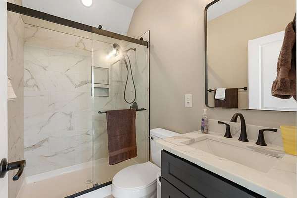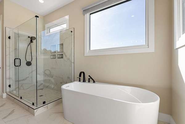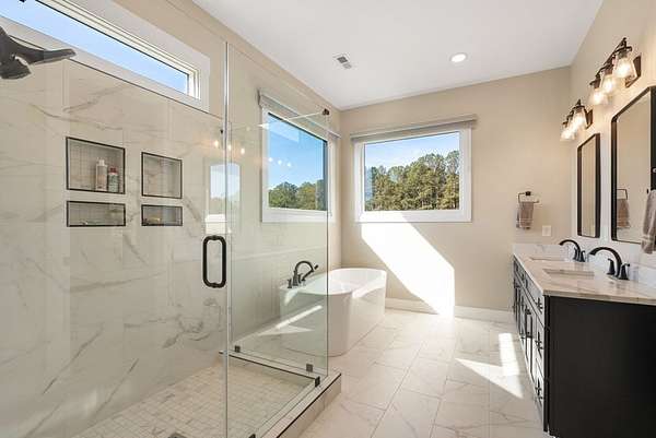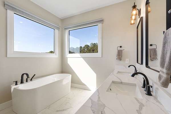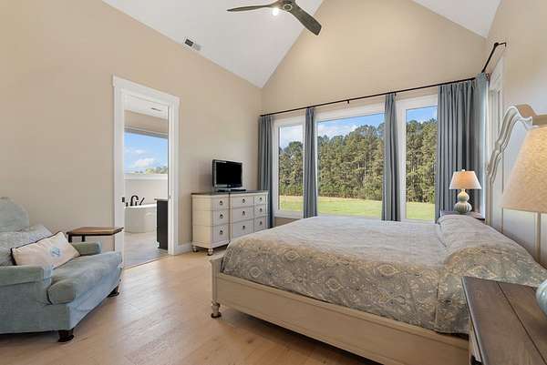 - 9+ Feet Ceilings, Ceiling Fan(s), Double Vanity, Full Bath, Laundry Room Sink, Master On Main Level, Open Floor Plan, Quartz Counters, Shower Separate, Smooth Ceiling(s), Storage, Tub-Separate, Vaulted Ceiling(s), Walk-In Closet(s), Wi-Fi