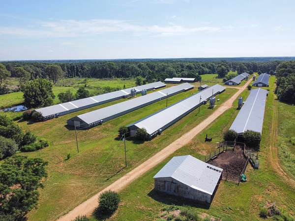 Located on 43+/- acres a few miles west of Dubach, LA, in the Hico community, this nine house fully operational broiler farm is the investment opportunity you've been searching for. Built between 2002-2006, the 40x500ft houses are designed for efficient broiler production and are equipped with modern updates, including a recently upgraded computer and security system. This farm includes all the necessary infrastructure for continued success in the broiler industry. It features two reliable generators for backup power, four litter barns, an equipment shed, a cleanout machine, and two 3Bed 2Bath manufactured homes. The Broiler Farm is under contract with House of Raeford Farms and grows a chicken with a target weight of 10Ibs. The farm generates an average annual income over $500,000, making it a highly profitable investment opportunity. Additionally, the property includes over 5 acres of fenced pasture for grazing and a livestock barn with 16 stalls, perfect for horses or to expand an existing cattle operation. Don't hesitate to call us today for additional information.