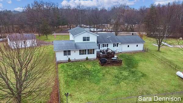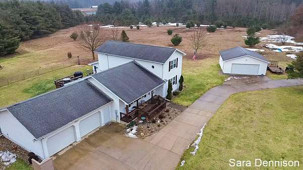 Beautifully updated home set on nearly 15 private acres in Big Rapids. This spacious property offers 4 large bedrooms, 3.5 baths, main floor laundry, and a generous pantry. Bright, comfortable living areas open to a screened-in porch and deck overlooking peaceful views. Enjoy an impressive 4-stall attached garage, a 2-stall detached garage, a greenhouse, and a covered outdoor space with a firepit perfect for relaxing or entertaining. Cold Creek winds through the property, bringing abundant wildlife and adding to the serene, natural setting.