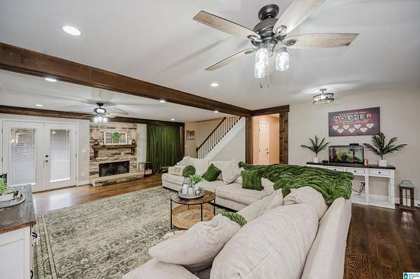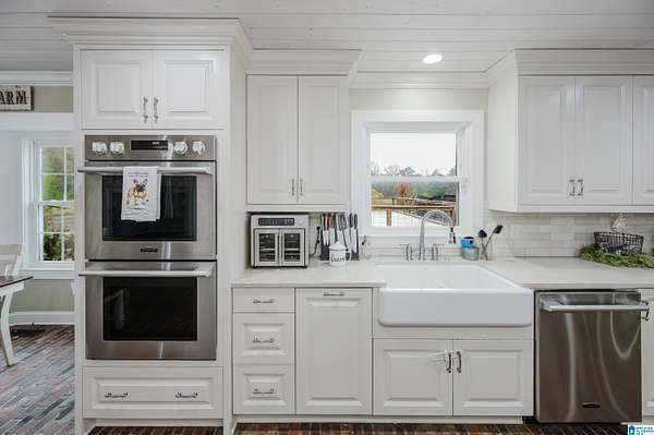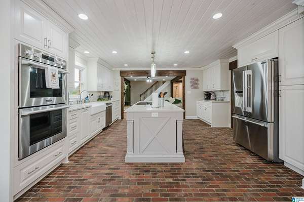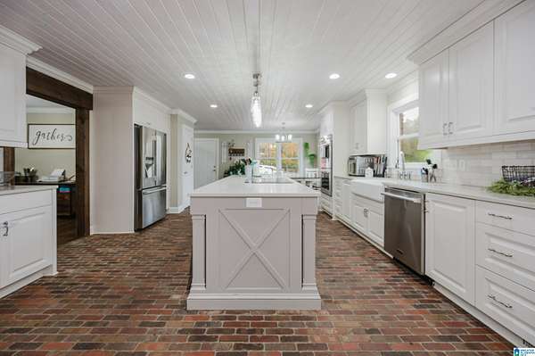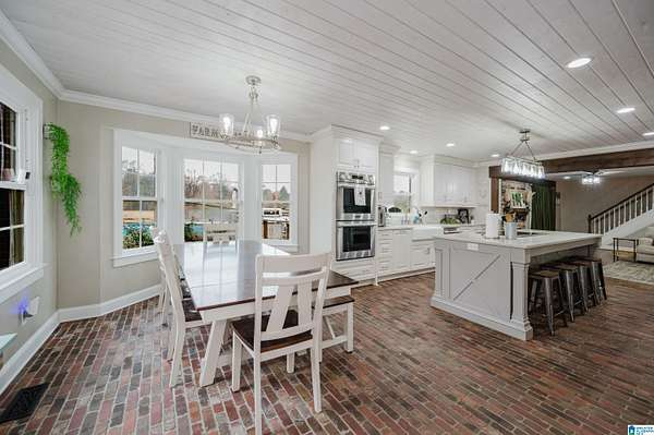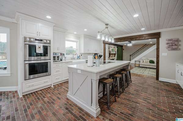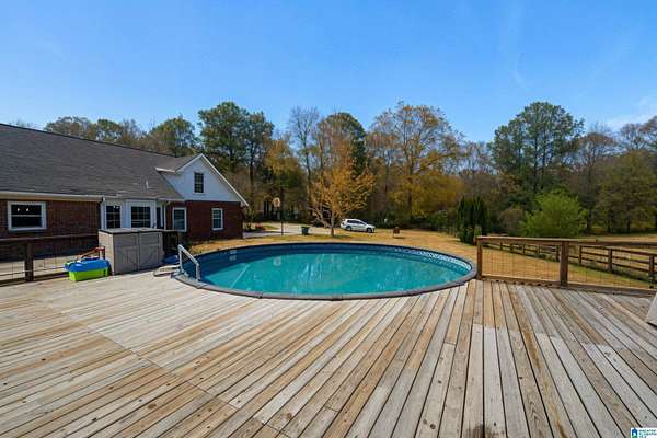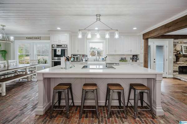 Stunning all-brick home on 17.1 fenced and cross-fenced acres featuring a barn, orchard, and above-ground pool. This beautifully updated home blends modern luxury with country charm. Inside, custom-built cabinets, granite countertops, brick paver floors, and tongue-and-groove ceilings. The kitchen includes double ovens, a multi-function microwave, and a wet coffee bar. The spacious living area offers a beamed ceiling, wood-burning fireplace, wood floors, and an office. The master suite features a large shower, separate tub, dual vanities, and a huge walk-in closet. The finished second story includes a versatile den/bedroom and full bath. The full basement provides a garage door and endless possibilities, plus two additional garage spaces on the main level for a total of 3. With its mix of open pasture, orchard, and updated interiors, this property offers space, comfort, and style perfect for those seeking privacy, functionality, and the beauty of country living. TOTAL SQ FT 7268
