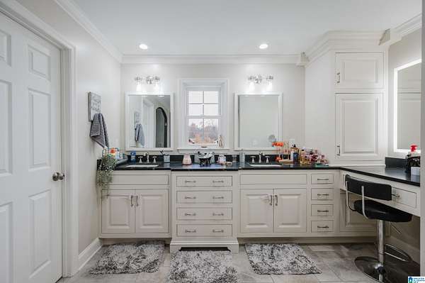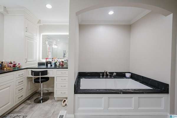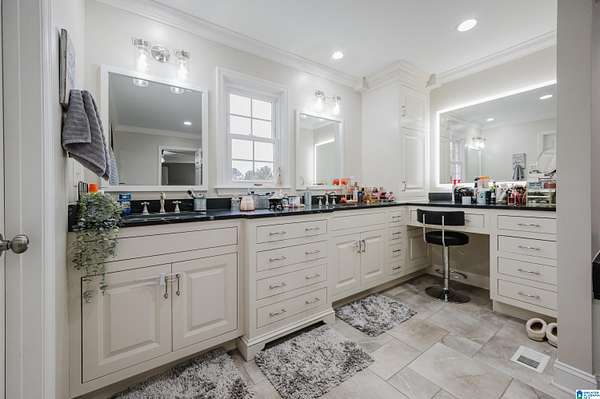 - Bay Window, Double Shower, French Doors, Garden Tub, Linen Closet, Recess Lighting, Separate Shower, Separate Vanities, Shared Bath, Tub/Shower Combo, Walk-In Closets