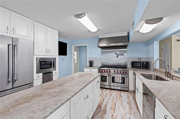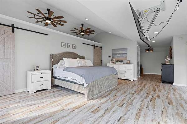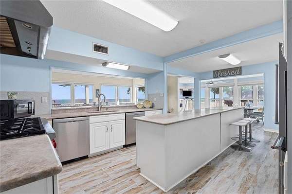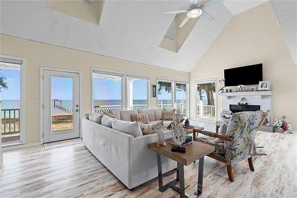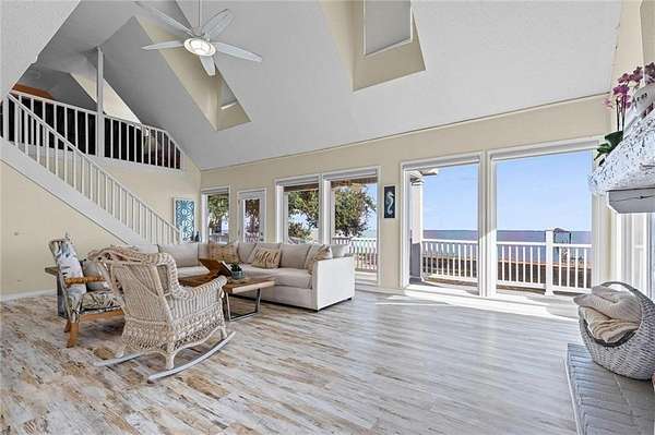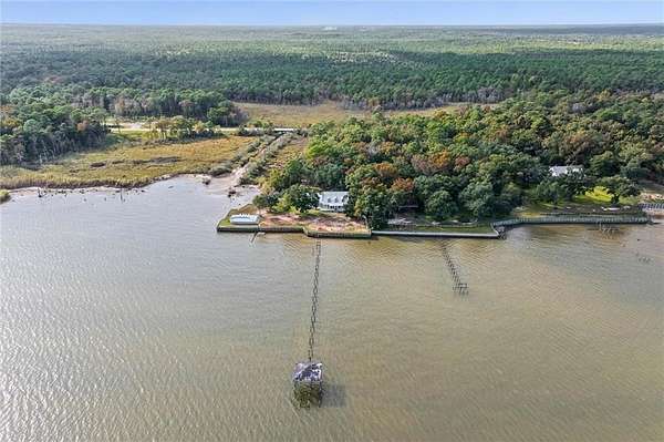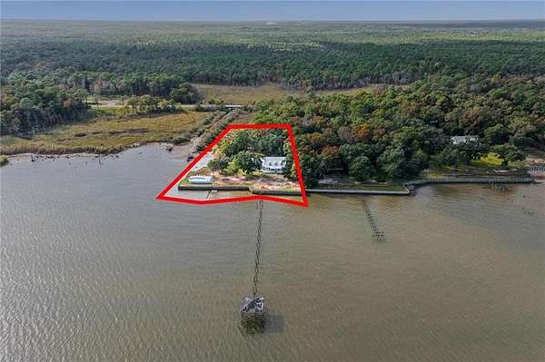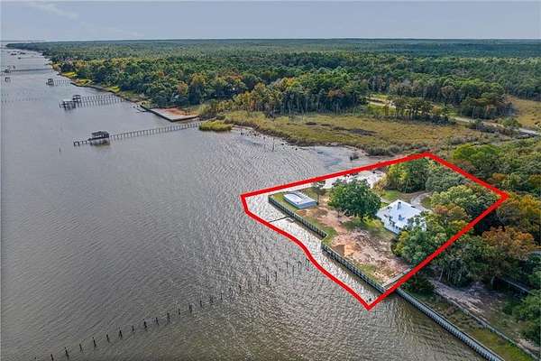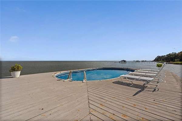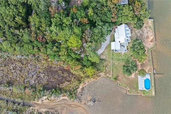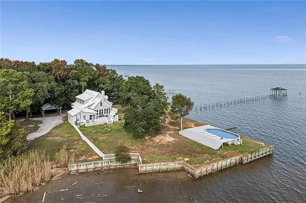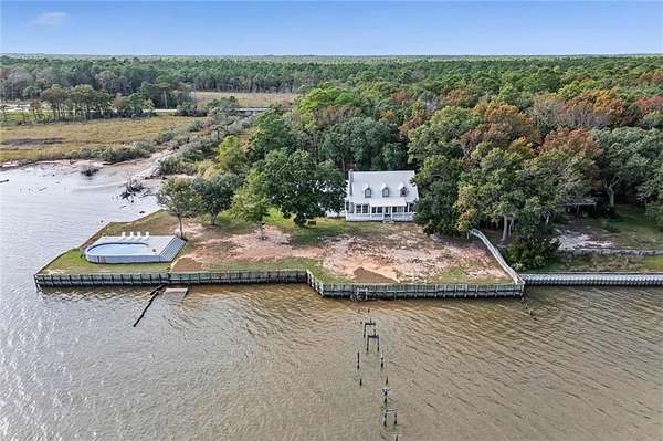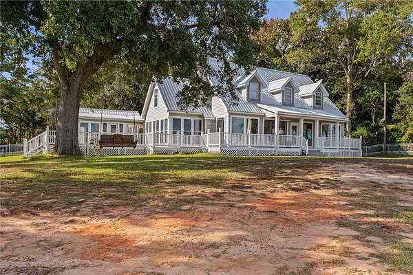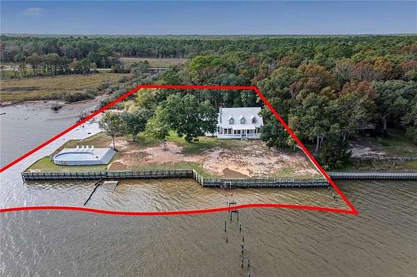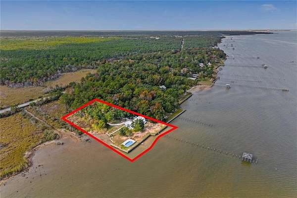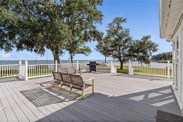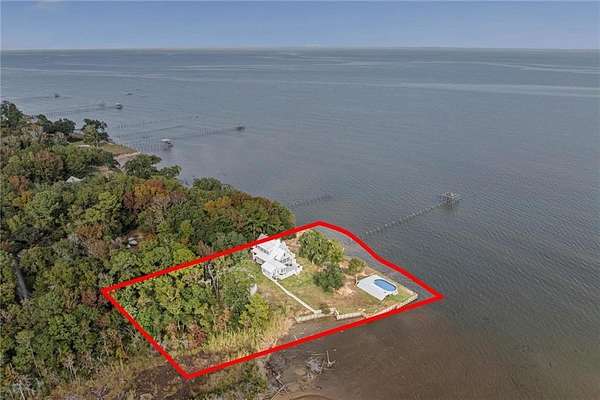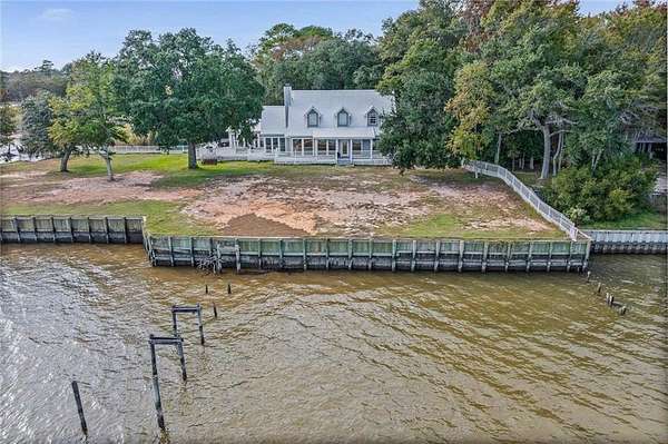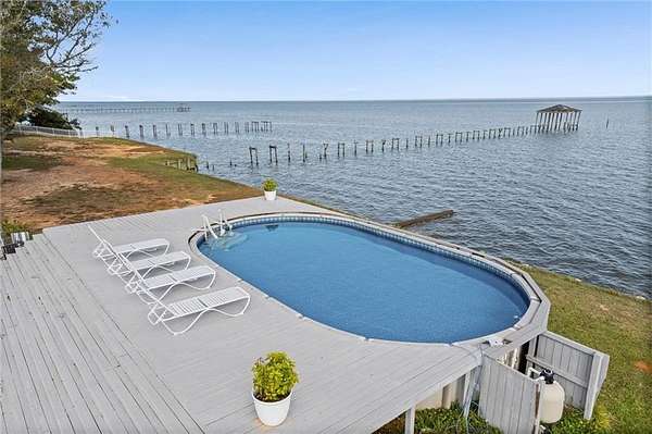 Welcome home to this stunning 4-bed/3-bath Southern Coastal Farmhouse, perfectly situated on approx. 2 acres with 267 feet of waterfront along beautiful Mobile Bay. The seawall was fully restored just a few years ago, offering peace of mind and lasting stability for years to come.Designed for comfort and timeless style, this home welcomes you with a chef's dream kitchen featuring a built-in 8-burner Wolf range with pot filler, two dishwashers, ice maker, microwave, and abundant storage, including both a large pantry and a hidden butler's pantry/workshop.The main floor boasts a new primary en-suite just off the dining room that has private entry to the deck, where both spaces offer unobstructed views of Mobile Bay. The open-concept living and dining areas are bright and airy, with large picture windows and skylights ideal for astonishing views. A second en-suite on the main level adds versatility and comfort for family or guests.Upstairs, you'll find 2 spacious bedrooms connected by a Jack-n-Jill bath, a separate living/recreation room, and a bonus room/office, perfect for working from home or creating a cozy getaway.Step outside to enjoy quiet mornings and breathtaking sunsets or sunrises from the covered front porch, expansive deck, or the detached, decked swimming pool (4 years old, with a new liner installed this summer), all offering panoramic bay views surrounded by mature trees and natural beauty.With its 5yr-old metal roof, classic dormers, and inviting porch, this property blends modern farmhouse elegance with Southern coastal charm. creating a truly exceptional waterfront retreat.Buyer/buyer's agent to verify all information deemed important during the due diligence period. Buyer to verify all information during due diligence.
