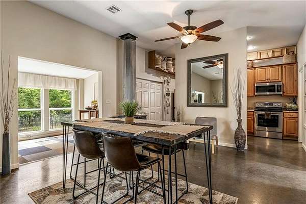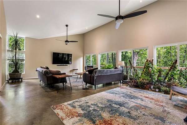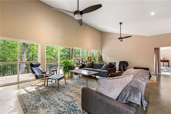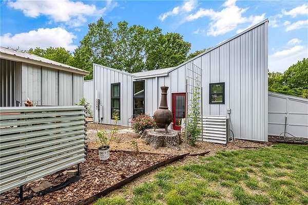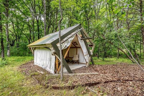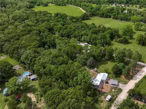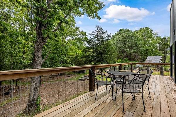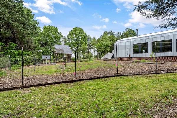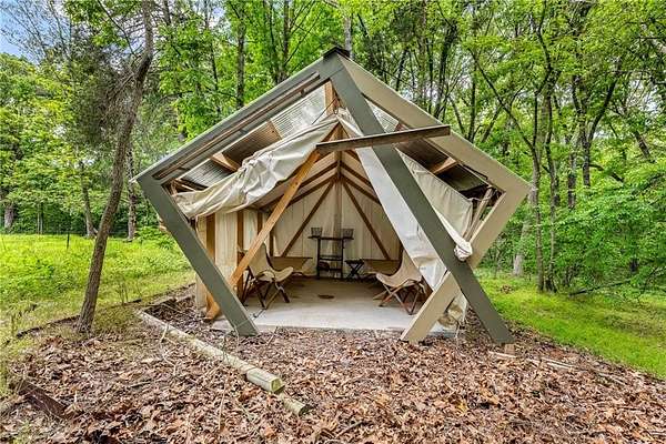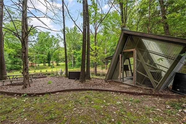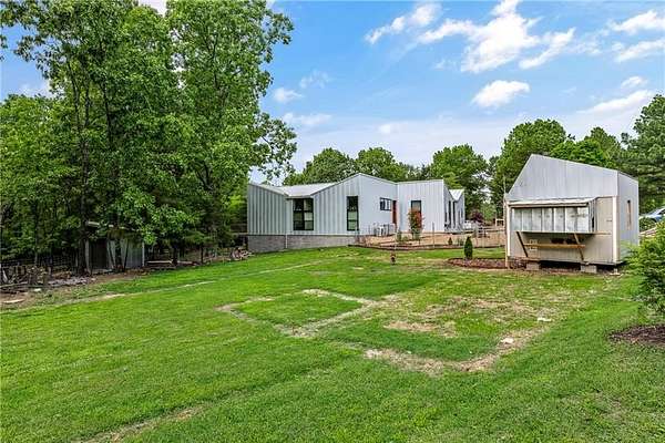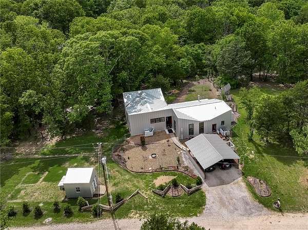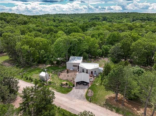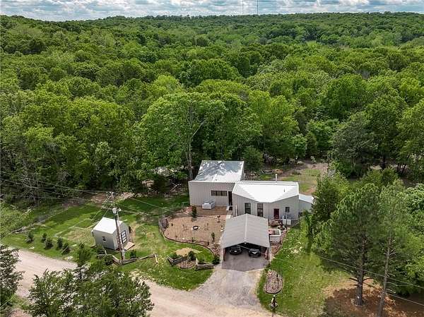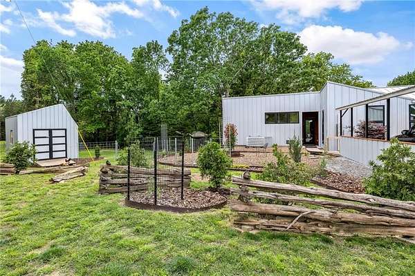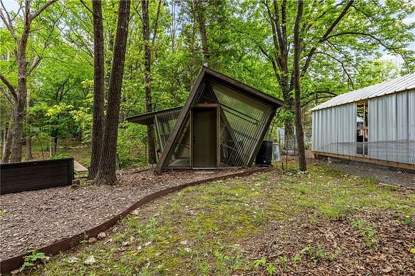 This one-of-a-kind home is tucked away in a peaceful, park-like setting near the lake--offering privacy, flexibility, and sustainable living. With its bright, open layout and large windows, the home feels connected to nature while still offering all the comforts of life. Relax or work from home on the private deck. Designed with eco-friendly living in mind, it has solar panels, a rainwater catchment system, and durable, low-maintenance metal siding. Perfect for those who love flexibility and an organic, eco-conscious lifestyle. The property includes a rental cabin and yurt, both with two full bathrooms nearby--great for family visits, guest stays, or extra income through short-term rentals. Multiple matching outbuildings, chicken coops, a storage shed, and an animal shelter make it easy to start a small homestead, hobby farm, or simply enjoy wide-open space. Minutes from the lake, I-49, and Rogers, this special property offers a unique mix of peace, practicality, and opportunity--ready for your next chapter.