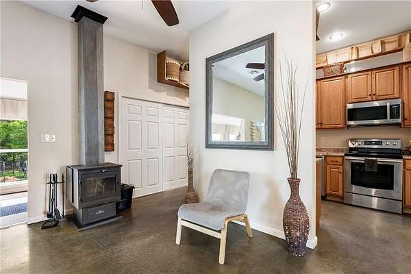- Attic Storage, Ceiling Fans, Ice Maker Connection, Pantry, Smoke Detector, Split Floor Plan, Walk-In Closets, Woodstove