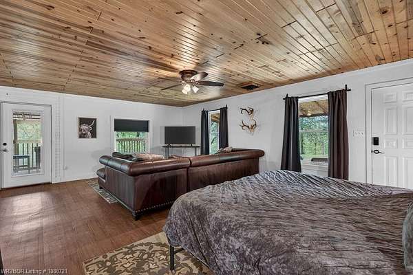 Welcome to Red Star Cabin! This charming and cozy 720-square-foot studio-style cabin offers beautiful views of Lake Smith and a peaceful, secluded feel while still being centrally located near some of Northwest Arkansas' most loved destinations, including Lake Fort Smith State Park, Devil's Den State Park, and White Rock Mountain. Situated on 7.2 private acres, this property is perfect as a personal weekend getaway or as an income-producing addition to your investment portfolio. Currently generating approximately $150-$175 per night, the cabin is consistently booked throughout the year and boasts a 4.9 Airbnb rating. Enjoy an abundance of nearby outdoor activities while still being close enough to experience all that Fayetteville and Fort Smith have to offer, including Historic Garrison Avenue, Judge Parker's Museum, the U.S. Marshals Museum, Razorback games, Dickson Street, wonderful restaurants, festivals, and more. 24-hour notice is required for showings due to possible bookings. Call or text your Realtor today!