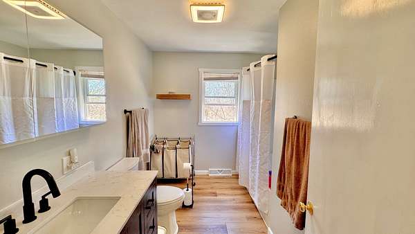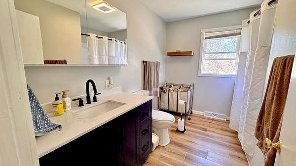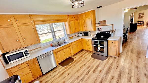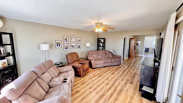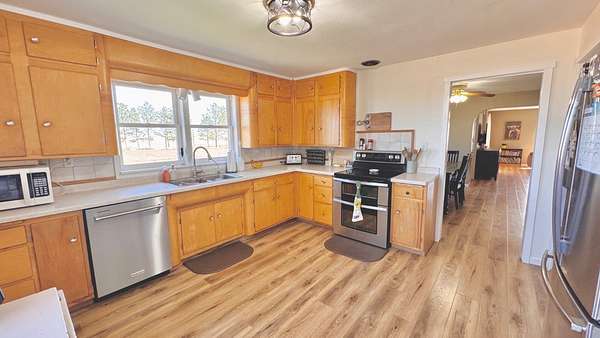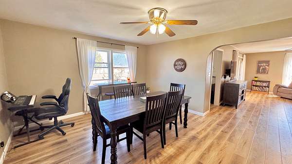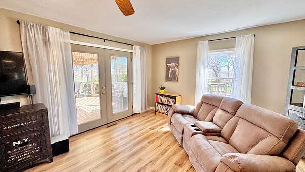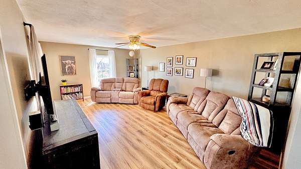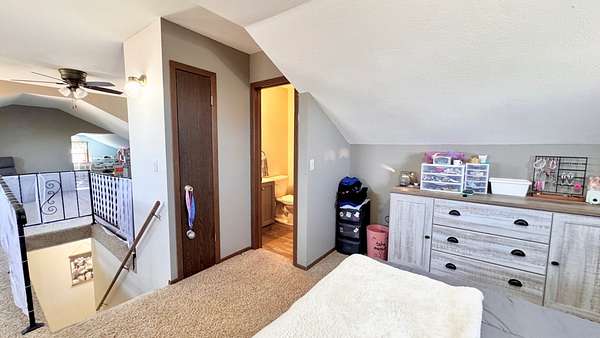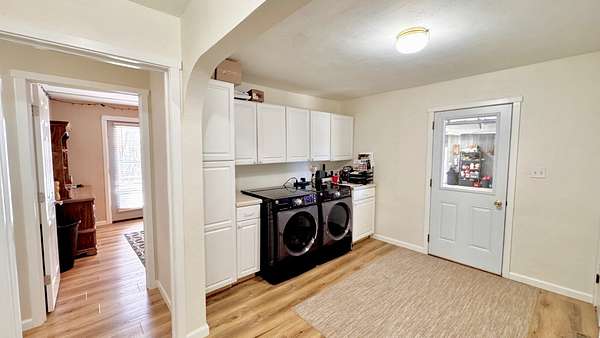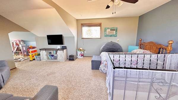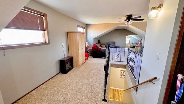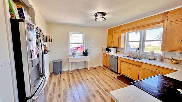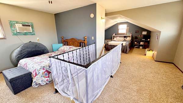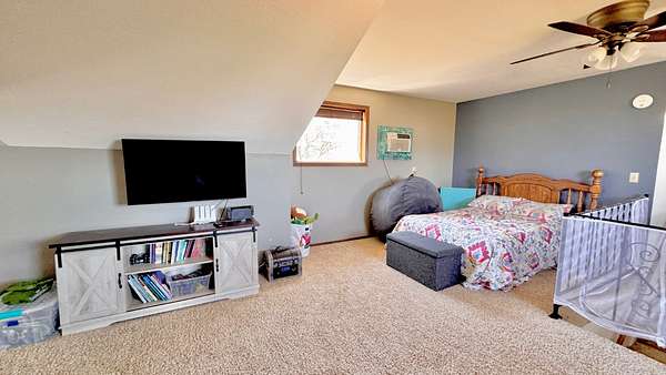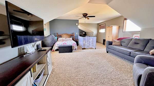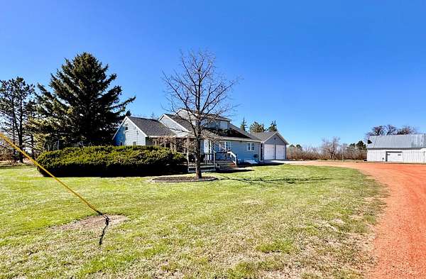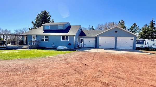 Peaceful country living awaits just north of Scranton on 7.9 acres! This well-maintained property offers space, functionality, and updates where it counts. Perfect for anyone looking to enjoy rural life with room to grow, just minutes from town. The main level features 3 bedrooms and a beautifully updated full bathroom, along with a separate living room, dining room, and kitchen that provide a comfortable and practical layout. A spacious laundry/mudroom with built-in storage lockers located off the garage adds everyday convenience. The front entry leads directly into a small room off the living room, used currently as a small office space. Step outside from the living room onto the covered front deck or enjoy direct access to the backyard cement patio from one of the bedrooms. Upstairs, a full loft offers additional living space with potential for a bedroom, along with a convenient half bathroom. The home includes a large, unfinished basement with solid cinderblock walls, offering excellent storage or future finishing potential. The attached 3-stall garage is heated and insulated, making it ideal for North Dakota winters. Outside, the property continues to impress with multiple outbuildings, including a large shop with a cement floor and an additional building with a dirt floor, both partially re-tinned. A covered area between the buildings provides extra protected parking. There's also a dedicated camper parking pad with electrical hookups. Surrounded by mature tree rows and shelterbelts, this acreage offers privacy and protection from the elements. The home is serviced by well water with three outdoor outlets, and features propane heat with an owned tank. Recent updates include central A/C replacement (2023), new appliances (approximately 2023), main floor flooring (2024-2025), an updated main floor bathroom (2024), and a new water heater (October 2025). The exterior was painted and seamless gutters installed in 2020, and vinyl windows run throughout the main floor. If you're looking for a well-cared-for acreage with space, updates, and versatility, this property is ready to welcome you home.