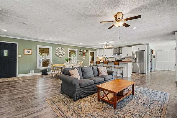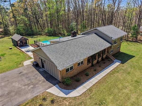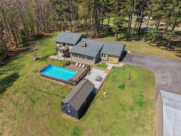 Welcome to your own private slice of country living, where charm, space, and comfort come together effortlessly. Nestled on over 6 acres of beautifully cleared, usable land, this farmhouse-inspired retreat offers the perfect blend of peaceful seclusion and everyday functionality-while still being conveniently close to shopping, restaurants, and all your daily essentials. The home features 4 spacious bedrooms and 3 full bathrooms, designed with both comfort and practicality in mind. Warm, inviting touches throughout. Step outside and you'll find everything you need to truly enjoy the lifestyle this property offers. Cool off on warm days in the above-ground pool with a sun deck ideal for relaxing or entertaining. The detached 3-port car workshop provides ample space for hobbies, storage, or your next big project, while the additional outbuilding-complete with area for your own sauna-offers a unique space to unwind and recharge. With no HOA and plenty of open land, the possibilities here are endless-bring your animals, start a garden, or simply enjoy the freedom and privacy that comes with owning acreage like this. This is more than just a home-it's a lifestyle you've been dreaming about.