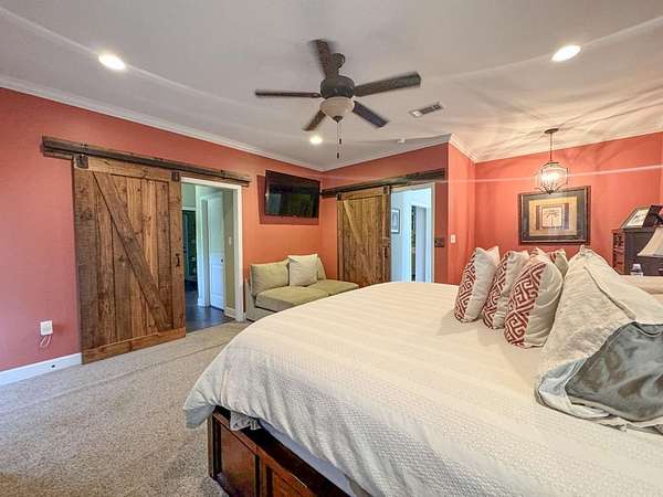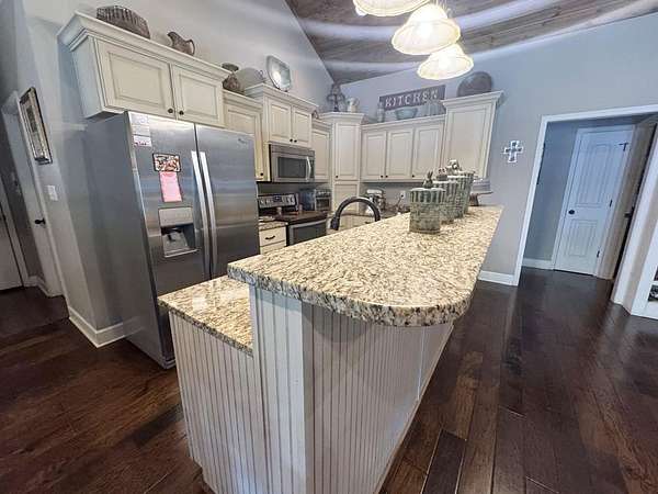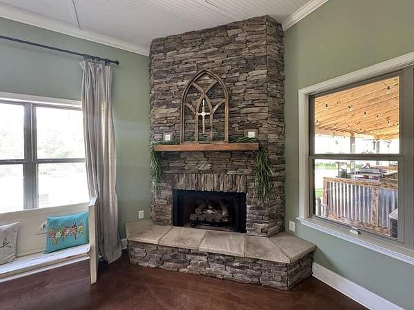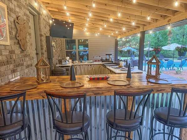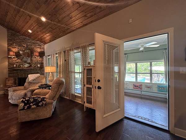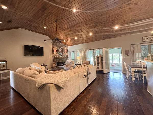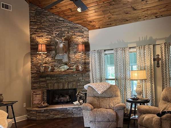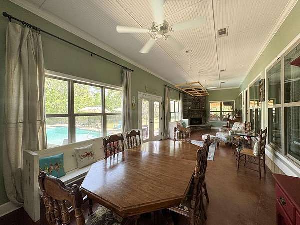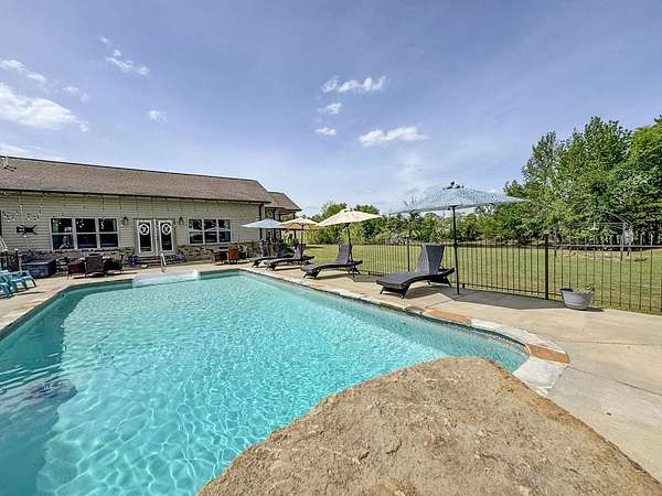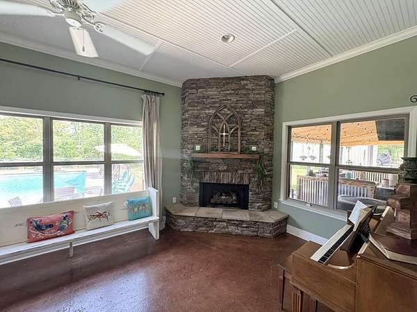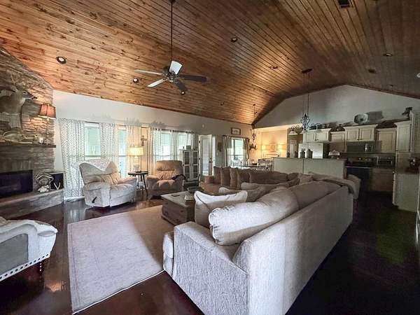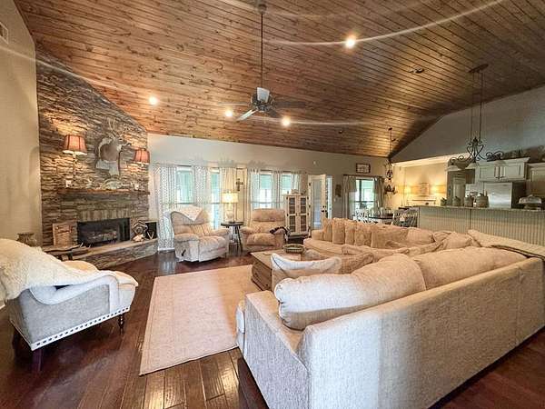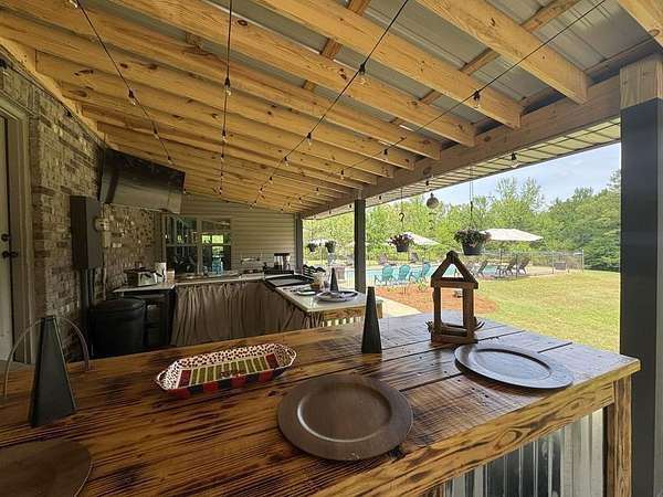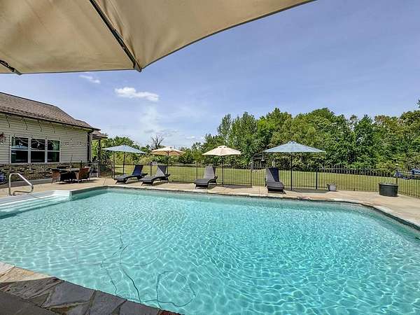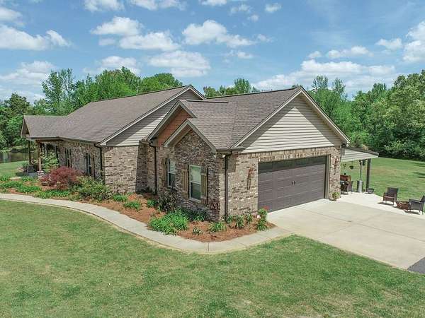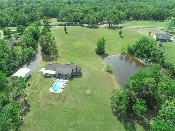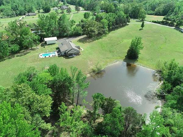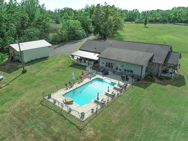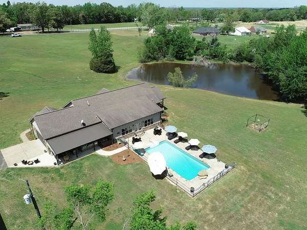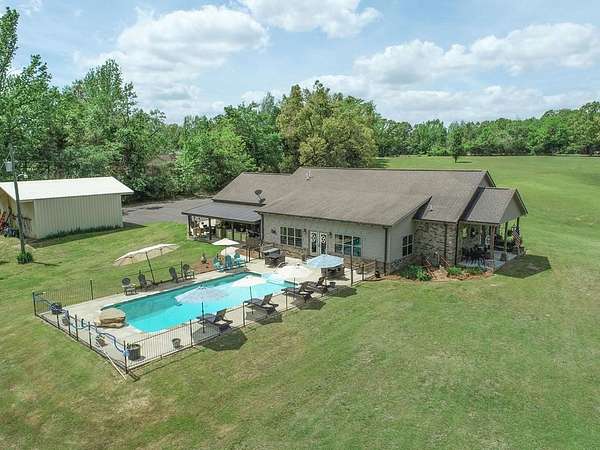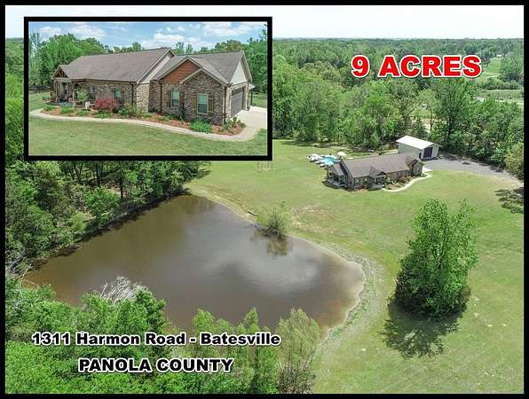 Just 5 minutes from Batesville & 20 minutes from Oxford, enjoy quiet country living on 9 expansive acres with city utilities! A long, paved driveway welcomes you to a rustic custom-built home with thoughtful landscaping, a curved walkway, covered porches, & a gorgeous in-ground pool. Not to mention the stocked pond & 30x30 garage workshop! Features include: an open split floor plan, vaulted wood ceiling, two stone gas log fireplaces, a farmhouse kitchen sink, custom cabinets, granite island, walk-in pantry, large laundry room, beautiful sun porch, & a master suite with separate tub & shower & two walk-in closets. There's also a convenient outdoor kitchen near the pool for hosting gatherings. The pond provides regular sightings of ducks & deer, & outdoor enthusiasts will appreciate opportunities to bow hunt and the satisfaction of frying fish caught right on the property. From the swimming pool to the pond, enjoy the peaceful beauty of the countryside with convenience of city living.
