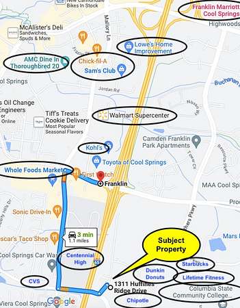 From Whole Foods Cool Springs, travel S on Mallory Ln. Left onto Liberty Pk. Just after I-65 overpass, turn Left onto Huffines Ridge Dr. Property is second parcel on the Right.