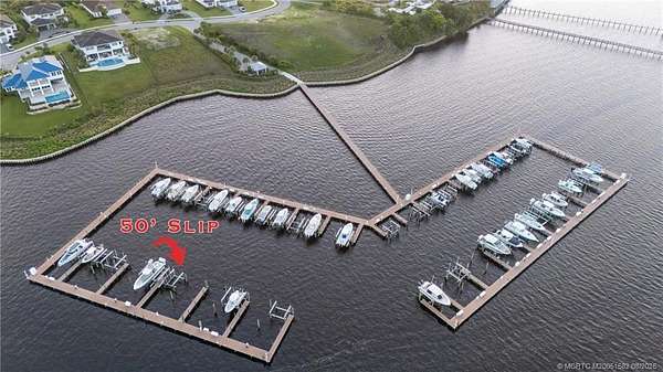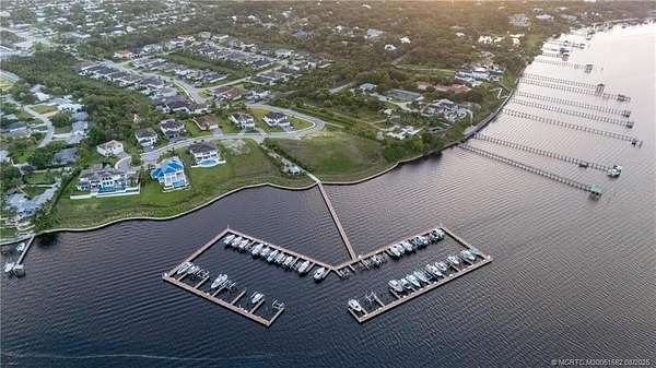 Owner financing available throughout construction-from land purchase to occupancy. Exceptional opportunity to build your dream home on this prime waterfront parcel in the exclusive gated community of Langford Landing. Situated over 30 feet above sea level, this property offers peace of mind and panoramic, mile-wide views of the St. Lucie River. Enjoy deep water access with a 50' boat slip and 24,000 lb lift in the private marina-ideal for avid boaters with quick access to the inlet and no fixed bridges. The southern exposure ensures natural light all day and stunning sunrises and sunsets. With limited inventory of quality waterfront land remaining in the area, this lot stands out as a premier offering in a coveted location. Full set of Building Plans available.