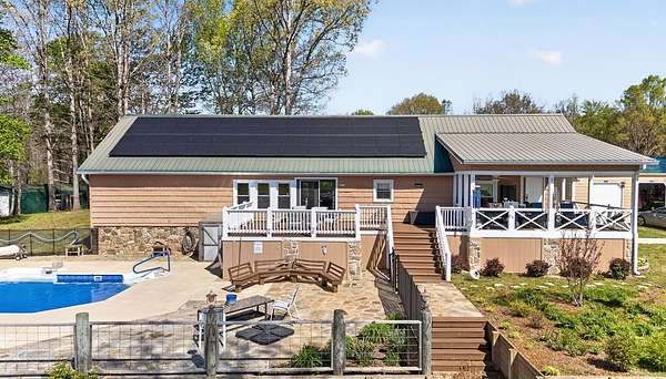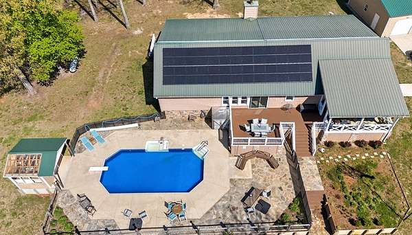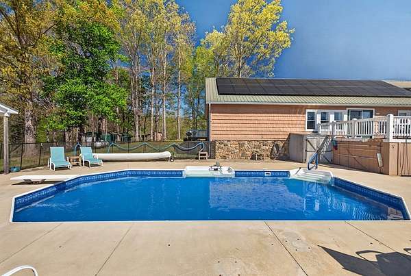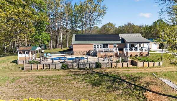 The house? Nearly 3,000 square feet, and beautifully remodeled. Outside? There are so many things to do! Fish in your fully stocked pond, bring your animals to 17 acres of rolling hills, enjoy long summer days with an in-ground pool, outdoor grilling station & huge back deck! Your private gravel driveway brings you to a 30' x 40' three bay garage & the ultimate getaway with no restrictions + space to do as you please! Come inside to a large kitchen w/ walk in pantry and an even larger dining room & living room area that open up with double doors onto the back deck. Continue on, you'll find 4 bedrooms, 2.5 bathrooms, a flex room AND an office! The primary suite has vaulted ceilings, walk-in closet & spacious bathroom. Noteworthy upgrades include: All new trex decking, newer HVAC units, concrete parking and side walk, tar and chip driveway, new liner in swimming pool, updated kitchen with new appliances, whole-house generator hookup, paid-off solar panels, and high-speed internet!