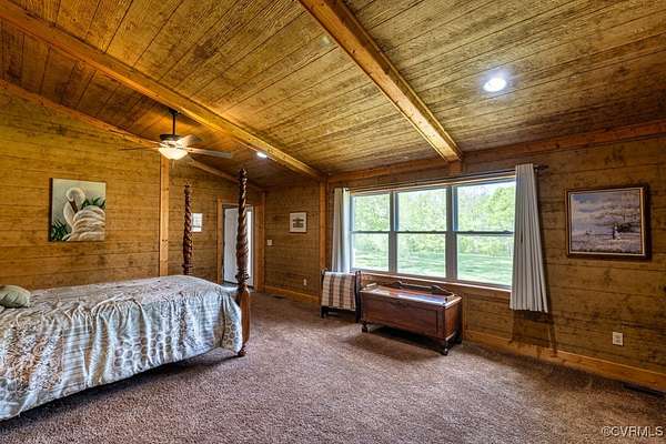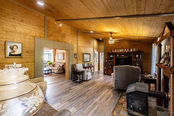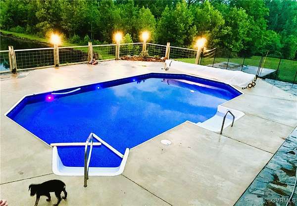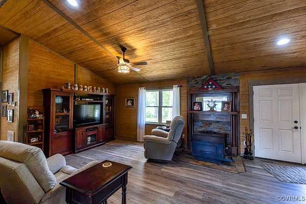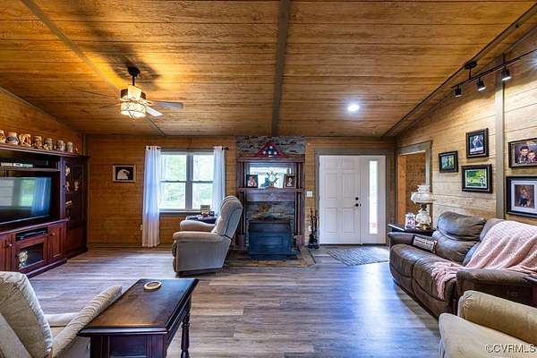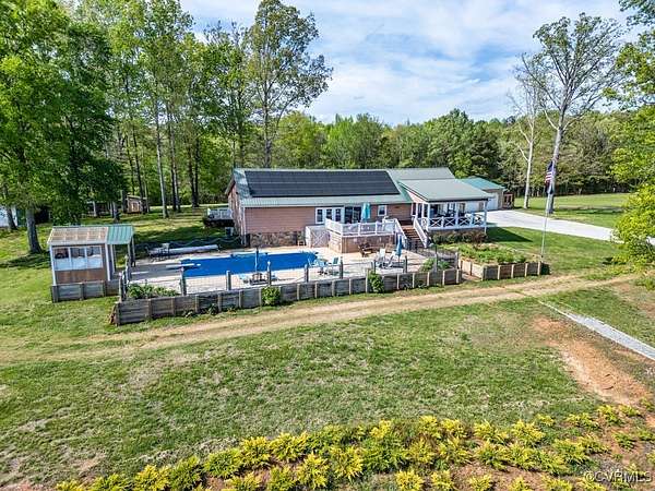 Tucked away on over 17 peaceful acres, this move-in ready ranch-style home offers the space, comfort, and setup you've been looking for-whether you're dreaming of a hobby farm, multigenerational living, or simply more room to breathe. A long, winding gravel driveway leads to the home, set well back from the road for maximum privacy and quiet. Inside, the spacious single-level layout includes 4 bedrooms, 2.5 baths, two separate living rooms, and a dedicated office-perfect for remote work or homeschooling. A large formal dining room is ready for holiday meals and gatherings, and the huge kitchen offers plenty of room to cook, gather, and create. You'll love the enormous walk-in pantry that provides storage space for everything from dry goods to seasonal cookware. A cozy bar area adds a relaxed spot to unwind or entertain guests. All appliances are just 3 years old, and the dual HVAC systems (2 and 3 years old) ensure year-round comfort. A new Trex front porch adds curb appeal without the upkeep, and fully paid-off solar panels convey. The home is also wired for a whole-house generator, giving you peace of mind no matter the weather. Outdoors, enjoy a sparkling saltwater pool, a 2+ acre stocked pond with its own dock, and two open fields (approx. 2 and 1.5 acres) ready for gardening, grazing, or play. Zoned agricultural, the land is ideal for animals like horses or chickens, or for anyone looking to start a hobby farm. There's a greenhouse, chicken coop, and plenty of storage throughout the property to support your rural lifestyle. A 40x30 three-bay detached garage with a concrete floor offers space for tools, equipment, or projects. This property is equal parts peaceful retreat and practical homestead-ready for whatever you want to create.