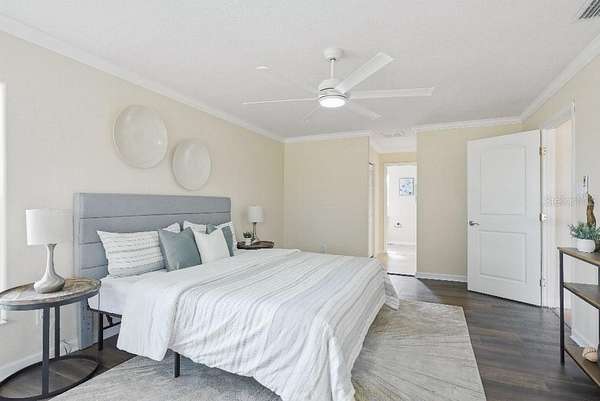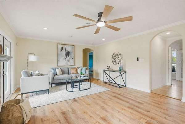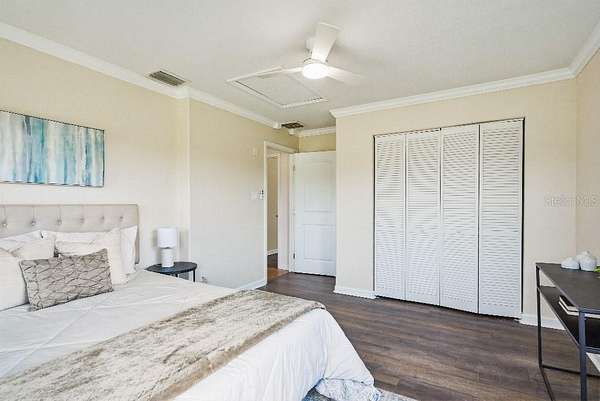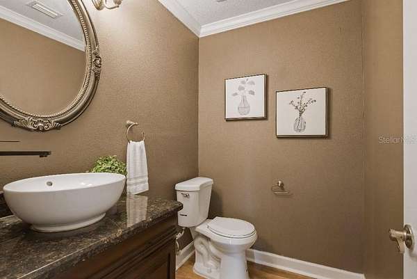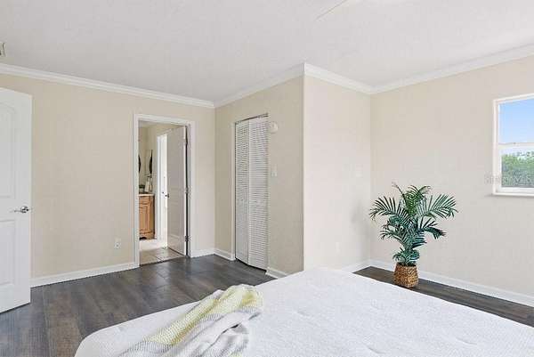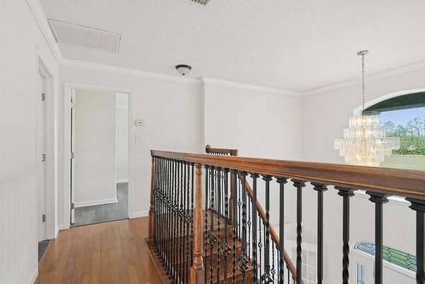 - Crown Molding, Eat-In Kitchen, Kitchen/Family Room Combo, Living Room/Dining Room Combo, Open Floorplan, Solid Surface Counters, Solid Wood Cabinets, Thermostat, Walk-In Closet(s), Wet Bar