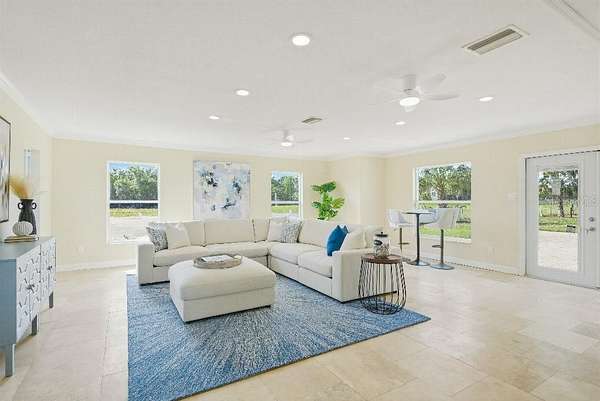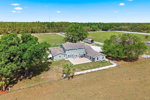 Rare 5.74-acre Riverview estate offering 3,930 sq ft of living space, privacy, and the freedom to enjoy true country living without sacrificing convenience. Surrounded by nature preserves in the front and green pastureland in the back, this property is ideal for the gentleman farmer, horse lover, or family seeking room to breathe, raise animals, and escape dense subdivision living. Bring your horses, cows, goats, and chickens and enjoy a lifestyle free from the congestion of typical HOA and CDD communities. The home features 4 bedrooms, 3.5 baths, a large office/library or optional 5th bedroom, dual upstairs and downstairs primary suites, and a huge game/entertainment room. The chef’s kitchen offers upgraded cedar cabinetry, granite countertops, a large island, pot filler, wine cabinet with second sink, and stainless steel appliances. Outdoor highlights include a 1,000 sq ft paver patio, fenced side yard with mature oak and fire pit, covered sandbox, fenced pasture, and large RV/boat cover. A rare chance to own a true estate property with usable land, privacy, and easy access to Tampa. 30 minutes from beautiful beaches, 30 minutes from downtown Tampa, and just over an hour away from all that Orlando has to provide. This home will not last long!!