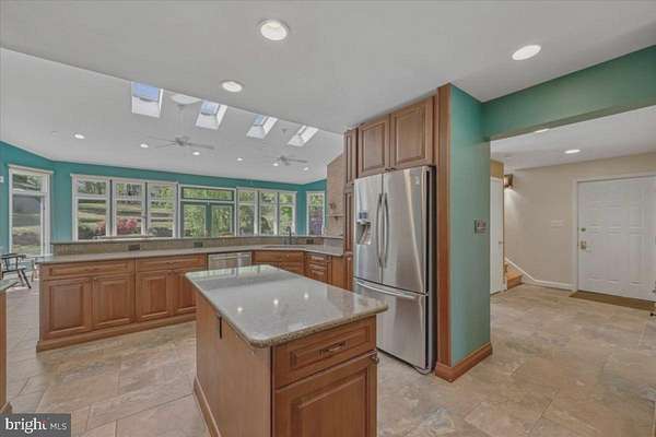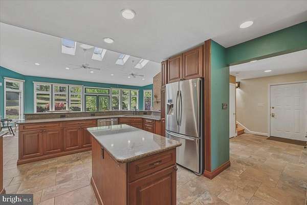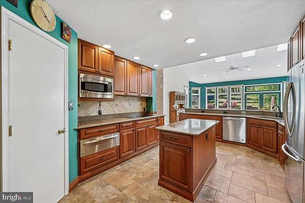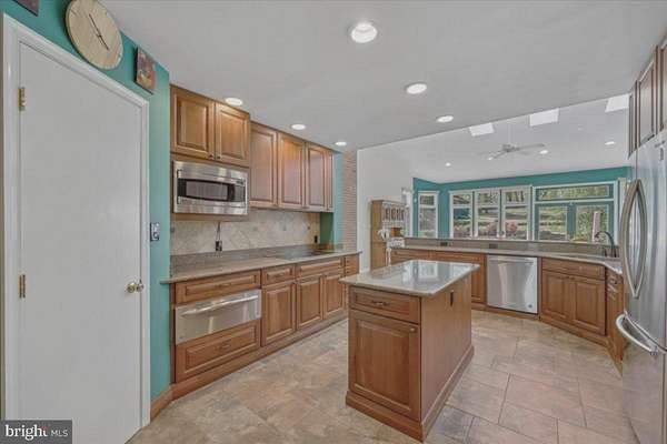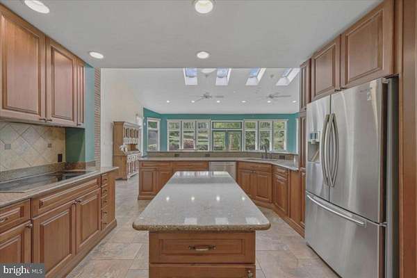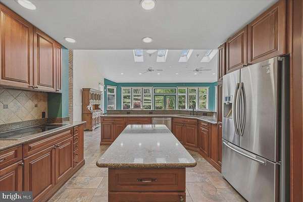 Exceptional luxury residence set on a beautifully landscaped lot, featuring a substantial addition and an impressive array of upgrades throughout. The heart of the home is the expansive chef's kitchen, complete with abundant cabinetry, granite countertops, premium stainless steel appliances, double wall ovens, and an oversized breakfast bar-all seamlessly opening to a stunning great room with picturesque backyard views. Bringing the outside in. The sun-drenched great room showcases floor-to-ceiling windows, skylights, automatic blinds, and a cozy fireplace, with ample space for both everyday living and entertaining. Upstairs, the addition offers a spacious owner's suite with custom built-ins, dual walk-in closets, and a spa-inspired bath featuring a soaking tub and separate steam shower. The main level includes a private home office and hardwood floors throughout. The fully finished lower level provides a large recreation room with wood stove, a brand-new full bath, and a versatile bonus room ideal for a gym, guest space, or hobby area. A generously sized workshop adds even more flexibility. Additional highlights include a new roof and windows, energy-efficient geothermal two-zone HVAC with backup, a three-car side-load garage, main-level laundry, heated floors in three bathrooms, a large outdoor shed, and a dedicated vegetable garden area. A rare opportunity combining space, comfort, and thoughtful upgrades-this home truly has it all.