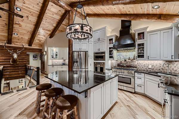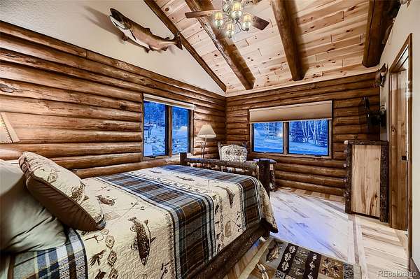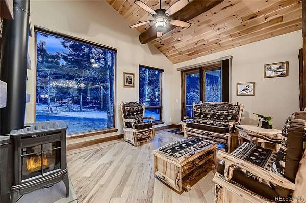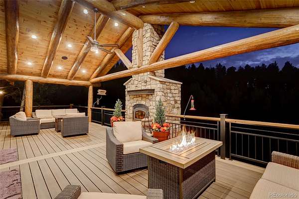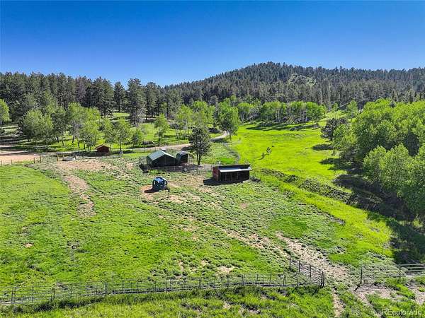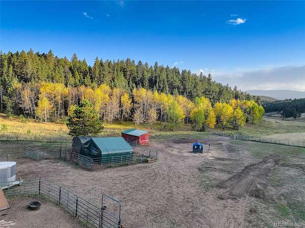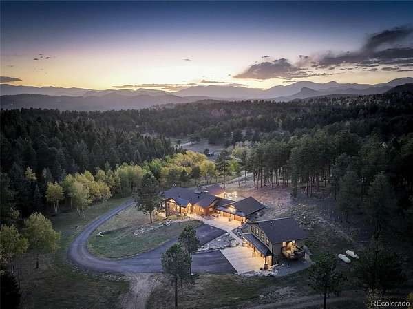This exceptional retreat spans 109.1 acres and is a rare find. It is ideally situated among towering pines, aspen groves, and flat pastures. The large deck and patio seamlessly connect the house to the breathtaking surrounding scenery, creating an unparalleled outdoor living space. Built in 2020, this property features excellent recreational areas and a flat pasture, enhanced by effective wildfire mitigation measures. The magnificent great room serves as the heart of this mountain sanctuary, framed by rich log beams that showcase authentic craftsmanship. The gourmet chef's kitchen is designed for entertaining. The open layout ensures conversation continues uninterrupted while preparing meals or serving drinks. The natural materials extend throughout both spaces, uniting wilderness luxury with functional elegance. Both residences have whole house back-up generators. The Pines & Tines Ranch is approximately 63 miles southwest of Denver International Airport. The topography of the ranch consists of grass covered valley lined with Aspen, Pine and Spruce trees that provide ample protection for livestock and wildlife. Several species of wildlife frequent the property including elk, deer, wild turkeys, bear and Mountain Lion. This property offers several building sites and is located only 15 minutes from Conifer and only 50 minutes from Denver. There is also 2 small portable barns and a loafing shed for horses. SELLER REQUIRES 24 HOURS NOTICE FOR SHOWING- Don’t miss the opportunity to own this unique and stunning property.