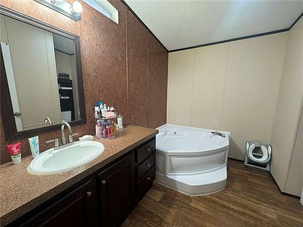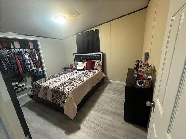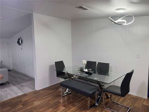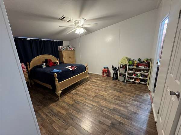 Est $2,441/moA must see to appreciate. Almost 10 acres to use with minimal restrictions. Home is well cared for and offers three bedrooms and two baths with the living space in an open concept. Split floorplan allows primary to have privacy. New vinyl flooring throughout. Large living area with view to kitchen and dining. Kitchen equipped with