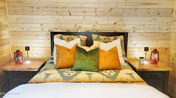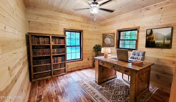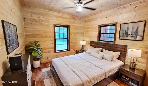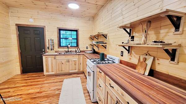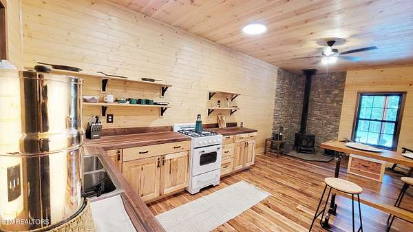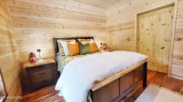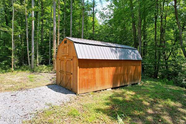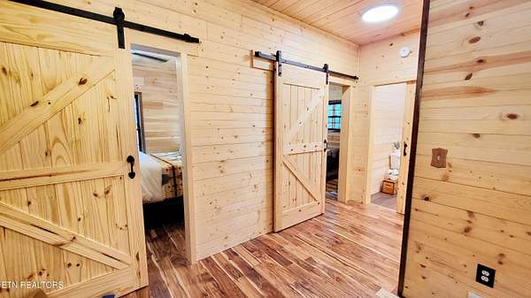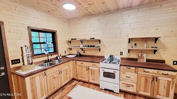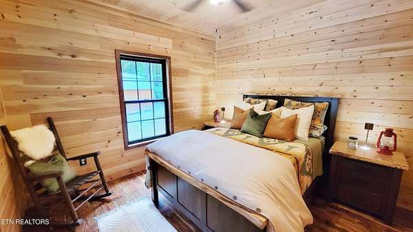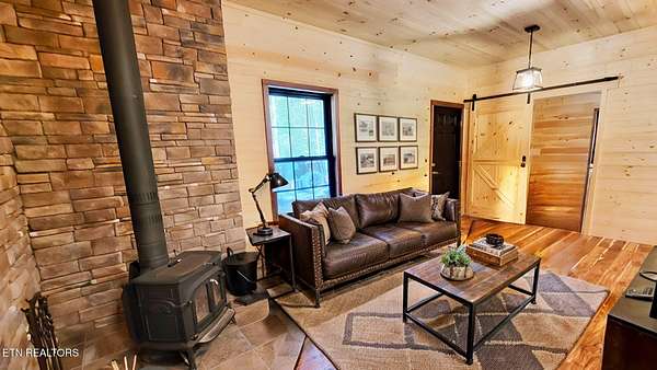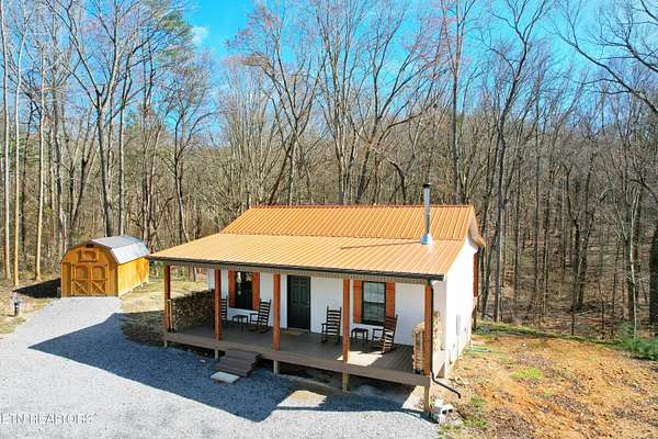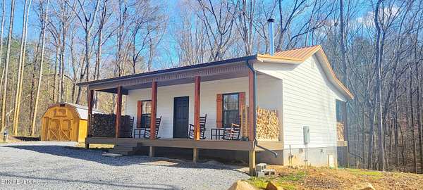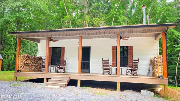 Private One-Level Ranch Cabin on over 10 Acres with Stream and Wildlife Built in 2023, this modern, one-level cabin sits on a spacious 10-acre property with privacy in every direction. Set back on a private drive, this 768-square-foot custom cabin isn't visible from the street or neighboring homes, providing the quiet and seclusion you want for a personal retreat or vacation rental business. Inside, you'll find durable Arcadia select hardwood flooring, clear-coated tongue and groove pine walls, and black walnut trim, combining practicality with a rustic look. The main living area features a stack stone fireplace with a slate ceramic hearth and wood-burning stove, adding warmth and character to the home. The kitchen is designed with KraftMaid hickory cabinets, soft-close features, and an Off-Grid Classic Retro propane range in Marshmallow White. High, 9-foot ceilings give the interior an open, roomy feel, while custom lighting and ceiling fans in each room ensure a comfortable atmosphere year-round. Outside, two large covered porches-one in the front and one in the back-are built with TimberTech decking, which is resistant to fading and wear. The custom cedar shutters add a thoughtful touch to the exterior's rustic look. Just below the cabin, a private stream runs through the property, offering a prime spot for fishing and a peaceful setting for outdoor activities. This land, rich with wildlife like deer and turkey, is ideal for those interested in hunting, hiking, or simply enjoying the outdoors. With 10 acres of unrestricted land, there's also great potential for future development, such as adding additional cabins or structures for a vacation rental business. Located just 10 minutes from I-40, the property provides a rare blend of seclusion and accessibility to nearby amenities, with public water available at the road for easy expansion options. Just 35 minutes to Sevierville, 30 minutes to Morristown, Jefferson County, and Dandridge Tennessee. Plan your visit to explore the possibilities this unique property has to offer!