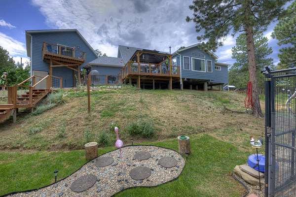 Sitting down from the road, the house has superb views to the rear of the Spanish Peaks, and is nestled into 35 acres of Pine Trees, and natural rock outcroppings, enhancing that mountain living.