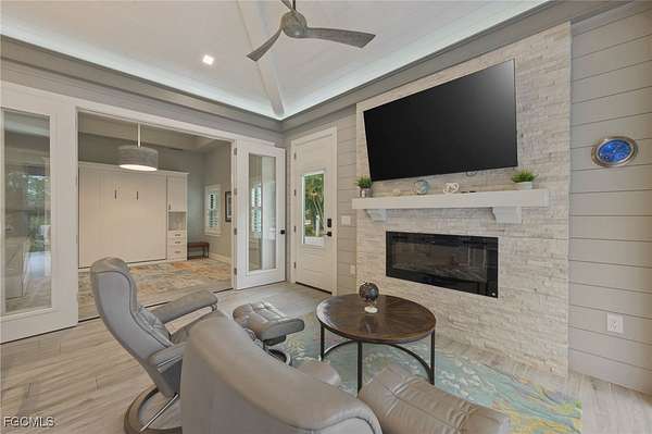If you are looking for Luxury Living with your Class A or Super C Motorcoach, you have found it here!! This slice of heaven with its lush lakefront location, million-dollar Sunrise views, and a fabulous high-end coach cabana can be your very own piece of paradise. The attention to detail really gives this property the WOW factor! There are many high-end details, such as a Queen Murphy Bed with side cabinets, granite countertops, stainless steel appliances, and vaulted ceiling with decorative lighting. The coach cabana is 840 sq ft under roof with an additional screened lanai so you can enjoy the indoor/outdoor living we all love here in SWFL. The lovely landscaping with extensive pavers and decorative paver knee wall really elevates this property to the next level of luxury. Being located within Golden Palms Luxury Motorcoach Resort will allow you access to activities and amenities for everyone including a heated pool, spa, sauna, exercise room, pickleball courts, a 1-acre dog park for your furry friends, & a 22-acre lake for catch and release fishing. You will be surrounded by nature but only a short drive to restaurants, shopping, golf courses, airports, & Gulf beaches. Take your tour of this stunning property today!!