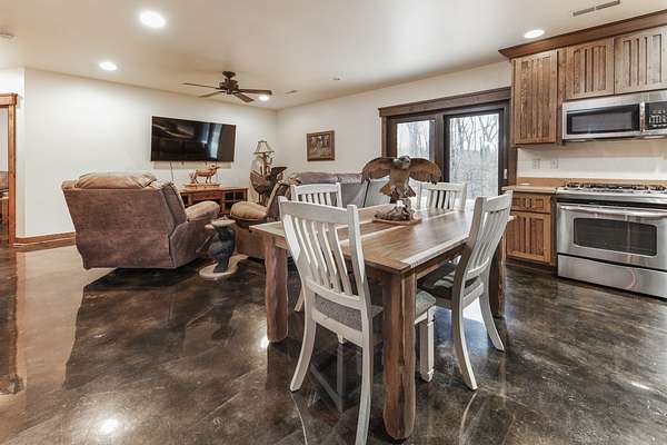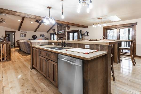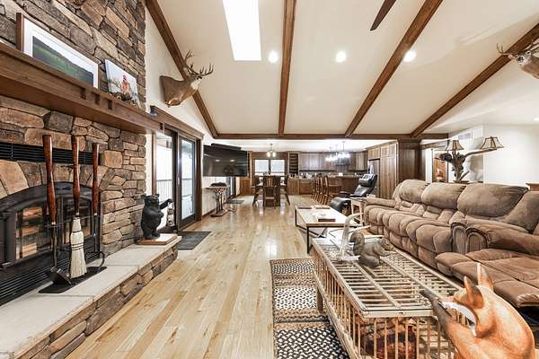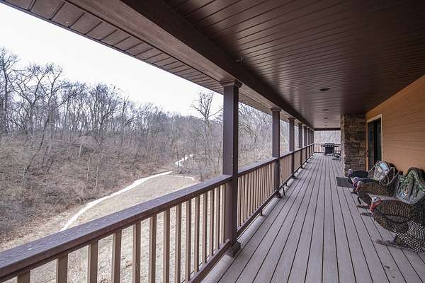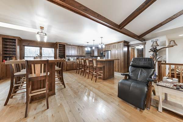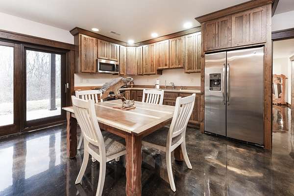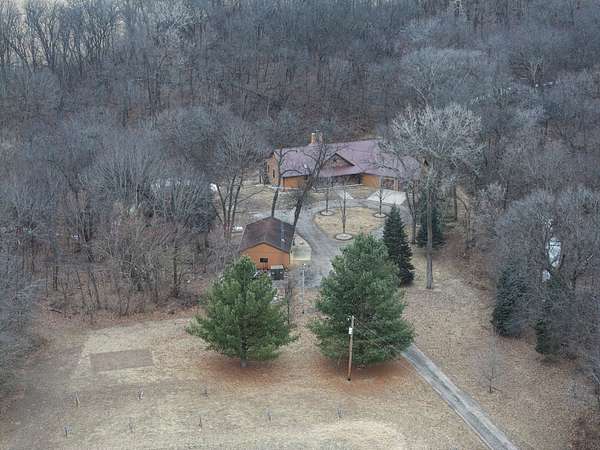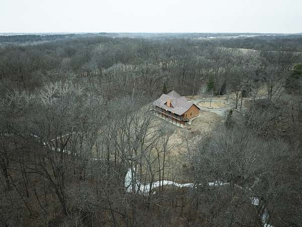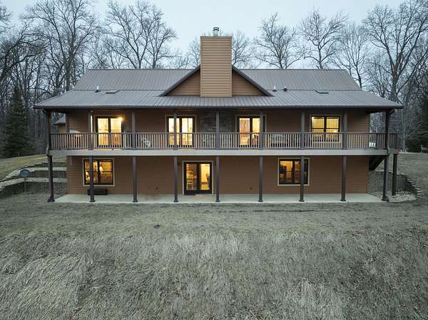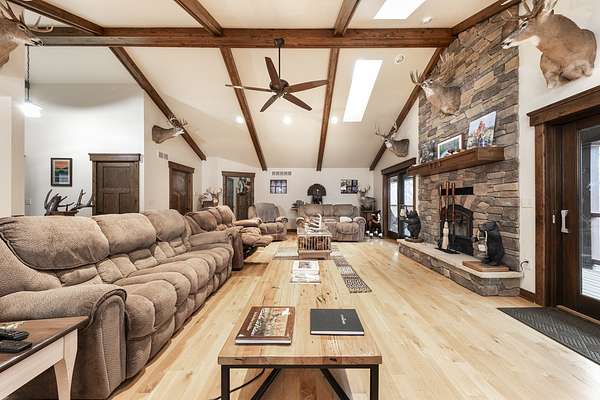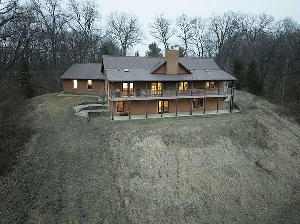 Nestled on 23 beautiful acres, this quiet country home offers the perfect blend of privacy, space, and outdoor adventure. Surrounded by nature and abundant wildlife, this property is a dream for outdoor enthusiasts and hunters alike. Included in the 23 acres are 5.5 acres that could be lease for farming or pastured for livestock or horses. The land is loaded with deer and comes set up with a dedicated deer hunting blind, making it ready for the upcoming season. Whether you're an avid hunter or simply enjoy watching wildlife roam, this property delivers an unmatched rural experience. The home features a back porch that spans the entire length of the house, the perfect spot to sip your morning coffee, unwind in the evening, and take in peaceful country views year-round. The main level features a spacious master bedroom with a private master bathrrom, plus an additional full bathroom for guests. Downstairs, the expansive finished basement provides incredible flexibility with three bedrooms and three bathrooms, ideal for guests, extended family, or multi-generational living. The basement also features radiant floor heat for year-round comfort and a convenient kitchenette, making it perfect for entertaining or creating a separate living space. Car lovers, hobbyists, or anyone needing extra storage will appreciate the attached three-car garage with radiant floor heat, plus an additional detached three-car garage that is all set up for radiant floor heat, offering plenty of room for vehicles, equipment, ATVs, or workshop space. If you're looking for a quiet country home surounded by timber, privacy, and room to roam, this one checks all the boxes.