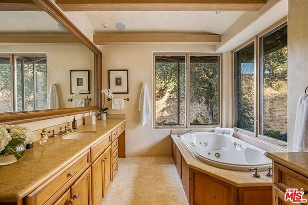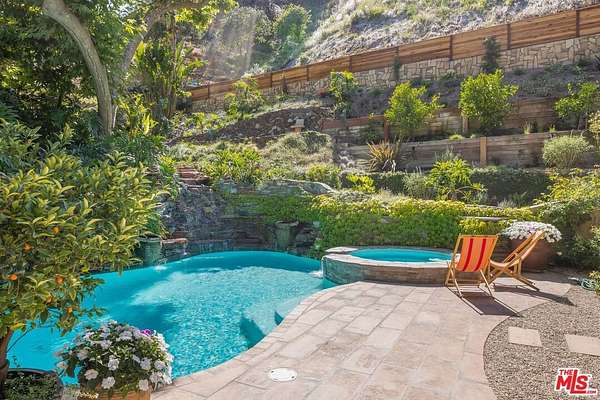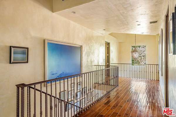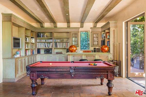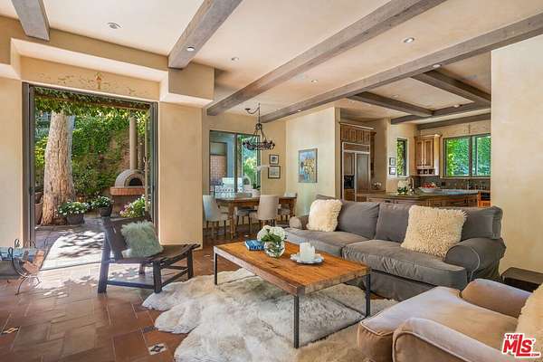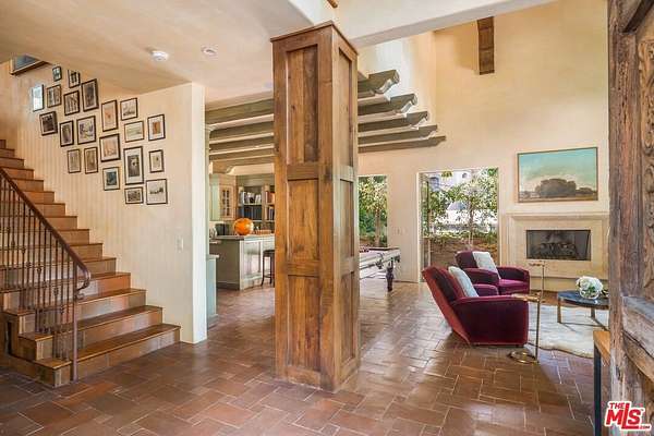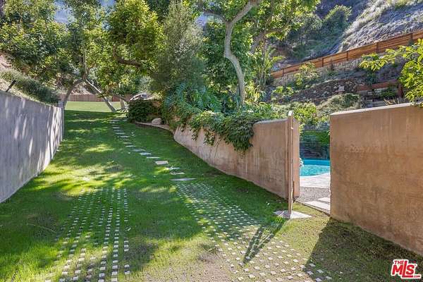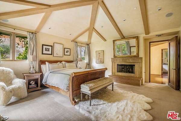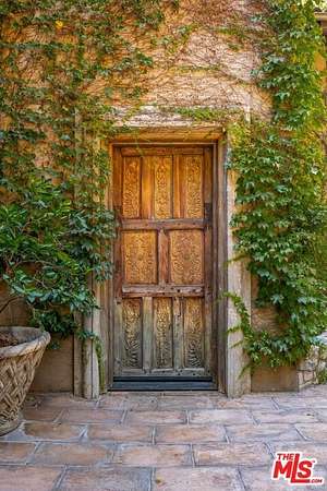 Nestled on an expansive, storybook parcel in the heart of Mandeville Canyon, this extraordinary estate feels worlds away from Los Angeles, yet remains just moments from the best of the Westside. Surrounded by lush landscaping, a sprawling meadow framed by a ranch-style fence and enchanting gardens, the property offers a rare blend of natural beauty, privacy, and old-world charm. The grounds are truly magical, with sun-drenched patios, peaceful verandas, and a lagoon-style pool featuring a grand waterfall, creating a resort-like atmosphere. Tucked behind gates, the home evokes the romance of the Tuscan countryside, blending timeless materials with European elegance. From the forged ironwork to custom stone and wood finishes, artisan workmanship is evident throughout. Venetian plaster walls add warmth and refinement throughout the interiors, while a striking oversized front door - over a century old with detailed engraving - sets a dramatic tone upon entry. Inside, the grand formal living room is a true showpiece, with ceilings soaring over 20 feet, dramatic wood beams, and elegant built-ins. French doors open to a spacious balcony, flooding the space with light and connecting the interiors to the surrounding beauty. A gourmet kitchen flows seamlessly into a cozy breakfast nook and inviting family room, both of which open to the outdoor living areas. The covered patio is ideal for entertaining, featuring a wood-burning clay pizza oven and a built-in stainless-steel grill. The pool, spa, and sweeping meadow accommodate both relaxation and large gatherings. Upstairs, the luxurious primary suite offers a private retreat with a fireplace, spa-like bath, walk-in closet, and a secluded balcony overlooking the verdant grounds. Two additional ensuite bedrooms provide comfort for family and guests, while the lower level offers a flexible fourth bedroom or gym and a wine cellar with custom stone and wood finishes.Warm, authentic, and entirely unique, this is more than a home - it's a private escape that captures the romance of the European countryside, nestled in the heart of Brentwood.