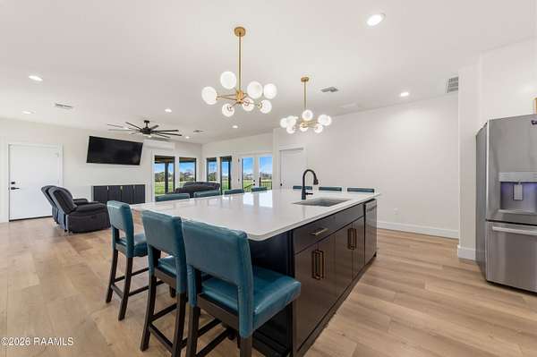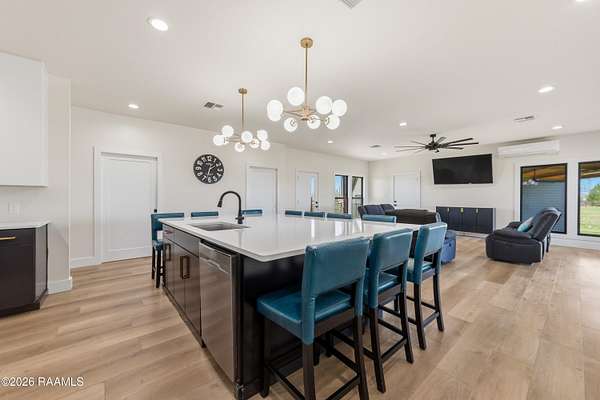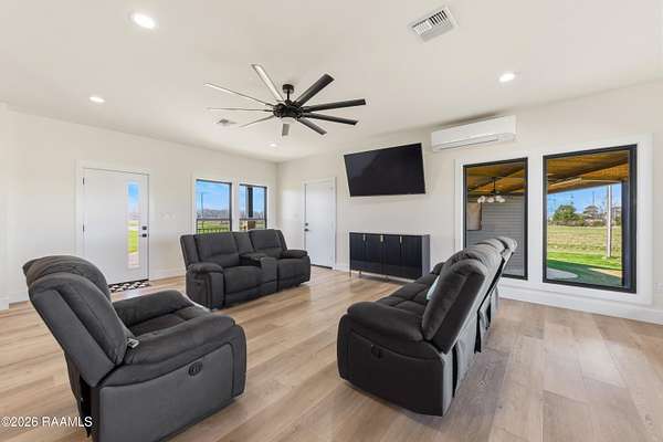 Step into this stunning modern contemporary home designed with entertaining in mind and perfectly situated on 2 beautiful acres -- offering space, privacy, and room to breathe. From the moment you walk in, you'll notice the seamless open layout that effortlessly connects the kitchen and living area, creating the perfect setting for gatherings both large and intimate. Floor-to-ceiling windows flood the home with natural light while creating a smooth indoor-outdoor flow, making entertaining feel easy and inviting. The kitchen is the true focal point of the home, showcasing an oversized island that comfortably seats up to 10 guests -- the ultimate gathering space for holidays, game days, and everything in between. A double oven range makes hosting a breeze, allowing you to prepare multiple dishes with ease. Comfort meets peace of mind with valuable warranties still in place: - Appliances -- approximately 8 years remaining - Main A/C system -- approximately 8 years remaining - Mini-split A/C in the living room -- approximately 9 years remaining A mini-split system also provides additional heating and cooling for enhanced year-round comfort. This home offers the perfect blend of modern design, functionality, and acreage living -- giving you room to entertain, relax, and truly enjoy your space both inside and out.