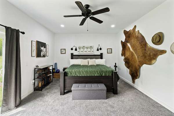 Nestled on just under 13 acres of lush, natural beauty, this exceptional open concept home exemplifies both quality craftsmanship and modern design. With its seamless flow between living spaces, the residence invites an abundance of natural light, creating a warm and inviting atmosphere. High ceilings and expansive windows offer panoramic views of the surrounding landscape, making it a perfect haven for nature lovers. Each room is thoughtfully designed to maximize space and comfort, with high-end finishes and durable materials ensuring a lifetime of enjoyment. Whether entertaining guests in the spacious living area or enjoying a quiet retreat in the serene outdoors, this well-built home offers the ideal blend of luxury and tranquility. There is a newly installed remote controlled gate at the end of the driveway. The property includes two RV sites, one with water/electric/septic, and the second with water and electric only. Proof of funds or preapproval letter required before showing.