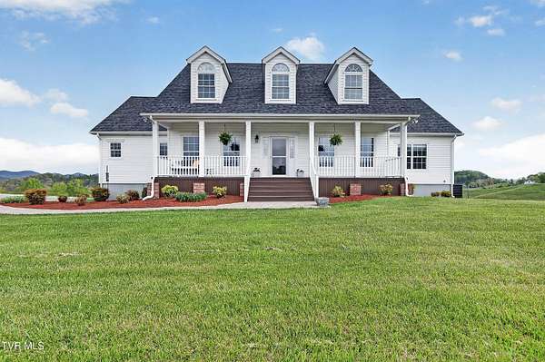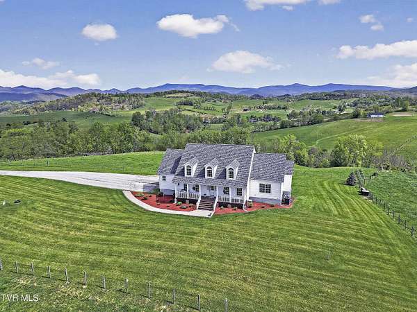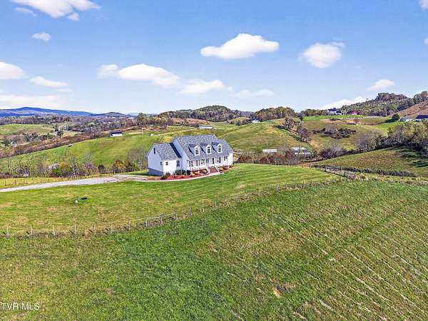 As Dorothy said, ''there's no place like home''. This charming 3,885 sq ft cape cod is the epitome of that statement. Poised atop a knoll, among surrounding hillsides & 37.56 acres of land, this home offers spectacular views from every window...to gaze at the far away mountain ranges is simply breathtaking! As soon as you open the front door, you feel at home. The main level presents 3 spacious bedrooms including the primary. Yellow pine flooring, recessed lighting & crown molding offer subtle details that enhance the space. And the gas fireplace in the main living area only adds to the warm & engaging atmosphere. The kitchen has an abundance of cabinetry, a large island, stainless steel appliances, & a breakfast nook where you can watch the sun rise over the mountain tops. There's a separate dining room for more formal occasions & an additional room for office needs, play time, or a library. The primary suite has all you need: mountain views from anywhere in the room & a large bath with oversized tub, separate shower & a walk-in closet. Upstairs you'll find 3 additional bedrooms & a bonus room, 2 full baths, 2 large storage areas & a landing for any other need that could arise. The basement is massive, with 5 rooms (one with a half bath-plumbed for a tub, an adjoining room-plumbed for a kitchen & another-plumbed for a full bath). There's also a workshop area with 3 worktables for carpenter projects. The exterior of the home offers a front porch for relaxing, a new back deck & a fire pit in the back yard-perfect for viewing stars at night. And the long driveway enables you to view the scenery as you come & go from the main house. The acreage holds 4 ponds, 4 water troughs, a 24 x 32 barn, 2 storage buildings & perimeter/cross fencing-all for your agricultural needs. This property is ideal for its current use as a cattle farm, or perhaps a pumpkin patch themed business, a vineyard, wedding venue, or simply a place to live & love. You really need to see it to believe it!