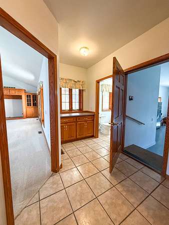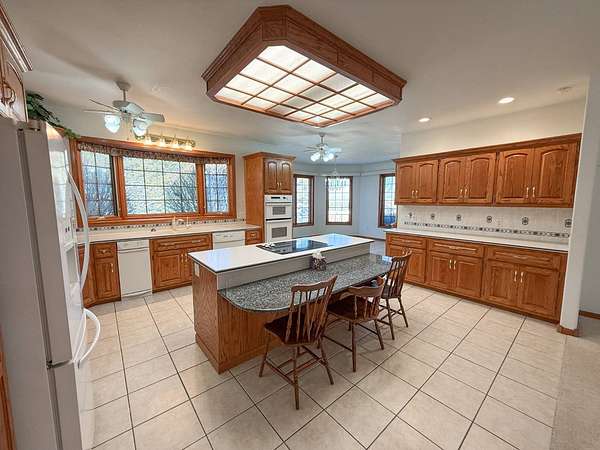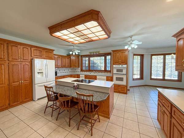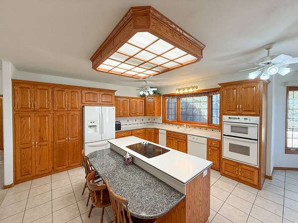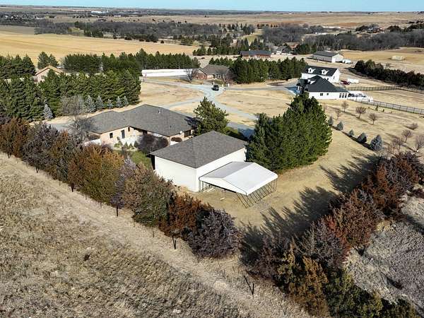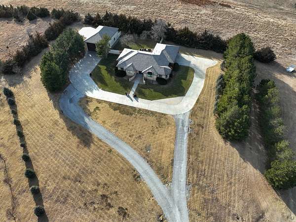Gracefully positioned on approximately 2.4 acres south of Norton, Kansas near the PDRA golf course, this exceptional 3-bedroom, 2 1/4-bath home offers refined living surrounded by natural beauty and spectacular views. Meticulously maintained inside and out, the home blends timeless craftsmanship with thoughtful modern upgrades, creating a peaceful retreat that feels both elegant and effortlessly livable.? The open-concept living area is designed for connection and comfort, anchored by a natural gas fireplace with blower and enhanced by new recessed lighting and brand new carpeting throughout. The living area carpet is specially equipped with conveniently placed floor outlets for easy electrical access. The thoughtfully appointed kitchen showcases rich oak cabinetry, Corian countertops, updated fixtures, and quality appliances-including dishwasher, refrigerator, trash compactor, stove-all of which stay with the home. Off the living room, a laundry area equipped with a Speed Queen washer and dryer that stay with the home, ample cabinetry and convenient counter space, plus a half bath and entrance to the attached oversized garage allow for efficiency and ease to the care of family and home. Previously a secluded jacuzzi room, a bonus room at the rear of the laundry area includes a second entrance to the attached garage and creates an opportune mud room or hobby space. Basement space off the garage entrance can be utilized for storage or a safe room. ?? Lovely French doors open into the serene primary suite, a true private retreat designed for rest and relaxation. Bathed in natural light, the space feels warm and tranquil, while the en-suite bath features a generous soaking tub, Corian countertops, and a spacious walk-in closet. Each of the three bedrooms is thoughtfully designed with well-proportioned windows that frame peaceful views and invite abundant natural light throughout the home. The second full bathroom offers both hallway access and a private entrance from the second bedroom, providing flexibility and convenience for guests or family members. ? Step outside to a spectacularly landscaped backyard and patio showcasing flowering crabapple trees and a stately 50-foot ash tree that provides much appreciated summer shade. To compliment the backyard oasis, the front entrance is framed by classic floribunda roses and established shrubbery. Mature Austrian pine and blue spruce trees line the northern and southern boundaries of the home, creating a setting that feels both serene and established. In addition to the attached two-car garage with new garage doors, the property features an impressive 50' x 30' detached shop with 16-foot ceilings, RV accommodations, and newly epoxied cement floors-offering endless possibilities for hobbies, craftsmanship, or storage. A double car carport is located beside the shop for extra outdoor storage and convenience. Both the home and shop are outfitted with DaVinci shake roofing, designed to last a lifetime. DaVinci roofing outperforms natural slate and shake with a Class A Fire Rating, Class 4 Impact Rating, and a 110 mph Wind Rating. To put a cherry on top of the spectacular features of this home, a new A/C and furnace, plus added attic insulation, ensure comfort and efficiency year-round. This is a rare opportunity to enjoy luxury, privacy, and breathtaking views just moments from town-a place you'll truly love coming home to.