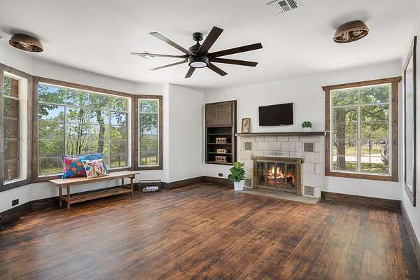 Horizon Oaks is a charming Hill Country ranchette located just outside of Downtown Medina...offering the best mix...Beautiful Views, Workshop, Pasture, Privacy and Convenience! The centerpiece of the ranch is a fully renovated vintage 1930's Texas Ranch-style home with a cool vibe... stylish Primary bedroom with huge cedar type closet and upscale bath w/hammered copper soak tub & steam shower within a wet room, nicely updated secondary bath & bedroom and an open Country Kitchen. Featuring 2 fireplaces for chilly Hill Country nights, wood and quarry tile floors and a unique hidden gun closet, Horizon Oaks is the perfect getaway spot located just 66 miles from San Antonio, 15 minutes to Bandera and 20 minutes to Kerrville. The property is fully game fenced and features an electric gated entrance, with recent chip-sealed driveway that brings you to the hilltop house. Owner has made substantial capital improvements such as: foundation, refurbished septic system, recent water softener and water treatment, remodeling, game fence, etc. There is a nice workshop for projects and several feeders on the property. Owner currently raises exotic rams and they can convey if desired.