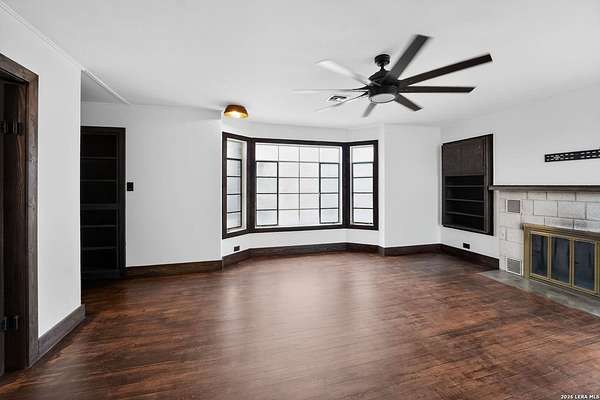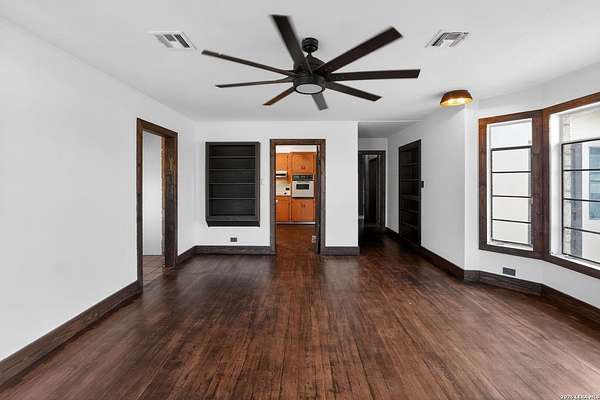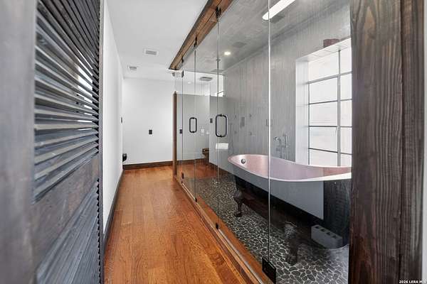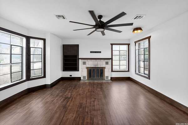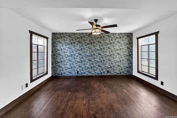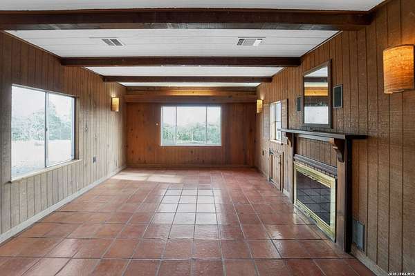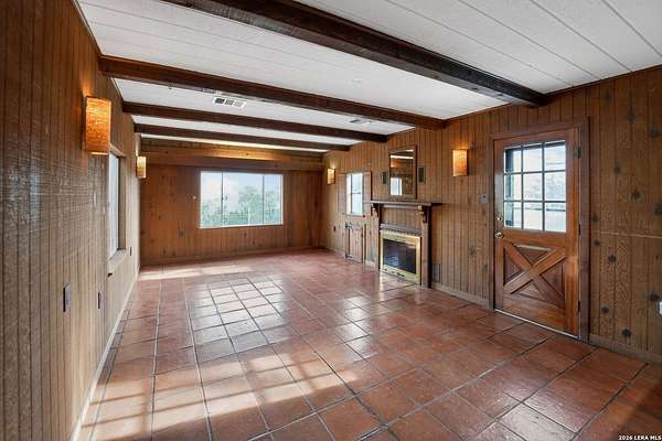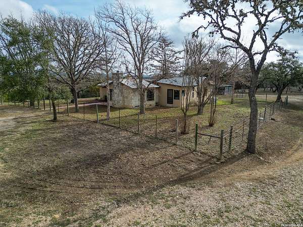 This 1934 hilltop gem sits on 10.2 secluded acres with views that will make you want to stay home, just minutes from the charming town of Medina. Two bedrooms, two bathrooms, and a fully renovated interior make it move-in ready from day one. Major improvements include a new septic system, foundation leveling and repair, and a water softener system. The primary suite features a cedar closet and a bathroom you will love with a hammered copper soaking tub and steam shower in a wet room that feels like your own private spa. Wood and tile floors run throughout and two living areas with fireplaces keep chilly nights cozy. The property is high fenced and the five Barbado rams can convey. A workshop/shed includes a covered livestock stall with plenty of room for tools, toys, and animals. Down below, the pasture has a seasonal creek adding a touch of Hill Country charm. This is not cookie-cutter Hill Country. It's full of character, charm, and ready for you to enjoy.
