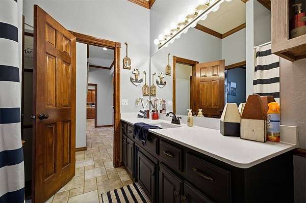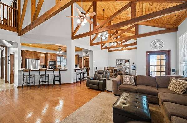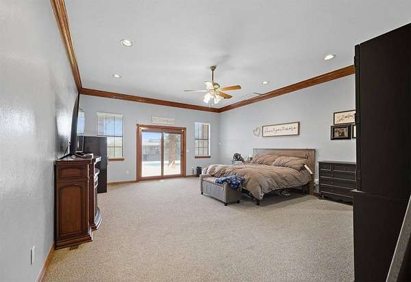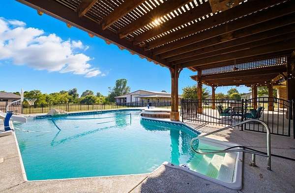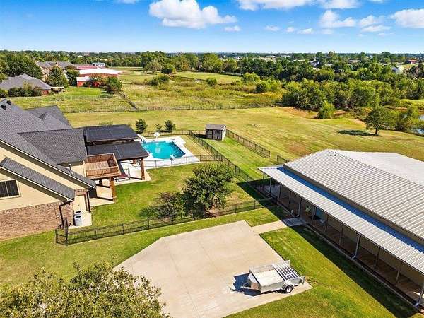 WOW! Welcome to your dream country oasis in the highly sought after Mustang School! This expansive estate offers room to relax and enjoy true country living with luxury amenities! This stunning property is perfect for multigenerational living. The 4749 sq ft home includes 4 bed 4 bath with formal office and bonus room. Also on the property is a 1706 sq ft guest dwelling offering 2 bed 2 baths. Live in luxury with a saltwater pool, spillover hot tub, pond, heated/cooled workshop. Three car garage includes a heated/cooled bonus room above and connected by roof/breezeway to main home. All situated on 5 beautiful acres, no HOA, and zoned AG. Step inside the main residence and notice the custom features and abundant living space! Formal office with built ins, beamed vaulted ceilings, each bedroom has private bath, quartz counters, stunning views of the outdoor retreat. Too many features to list! Step outside and be wowed by a huge back pergola covering almost entire length of home, gorgeous saltwater pool, spillover hot tub. SO much space to entertain and enjoy at the comfort of your own home! This property is loaded with upgrades and essential improvements, including whole home generator, storm shelter, new water softener, new well pump and pressure tank, new water heaters, new drainage system. Abundant parking space, lean to off back of workshop, storm shelter, storage shed. Offering resort-style outdoor living and incredible versatility, this property stands out as a rare opportunity. Appraised at $890,000 in 2023, priced to sell! Call your favorite realtor to get a private showing!