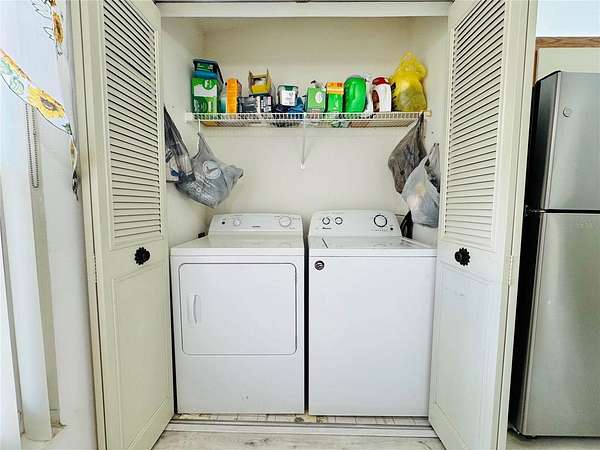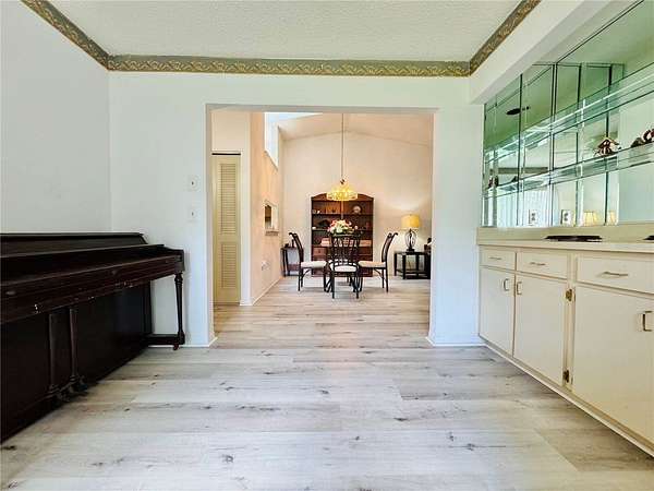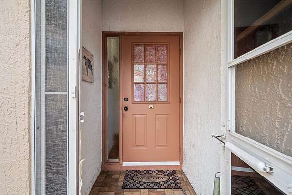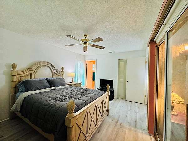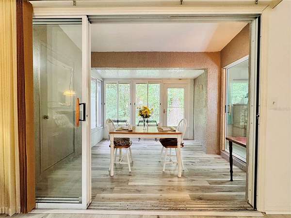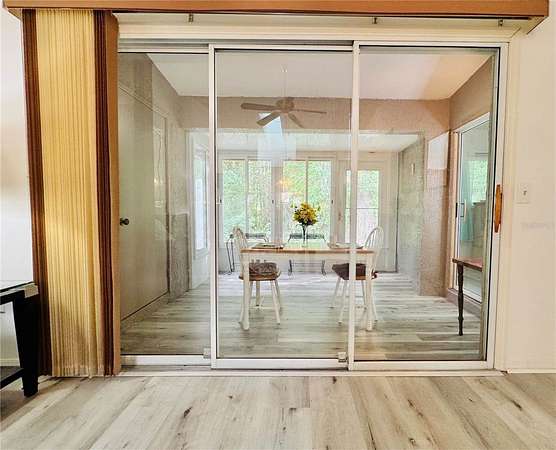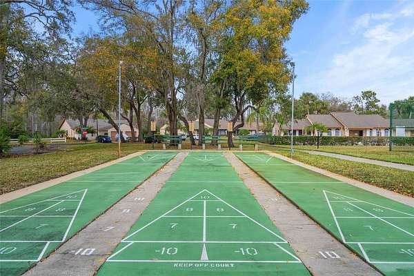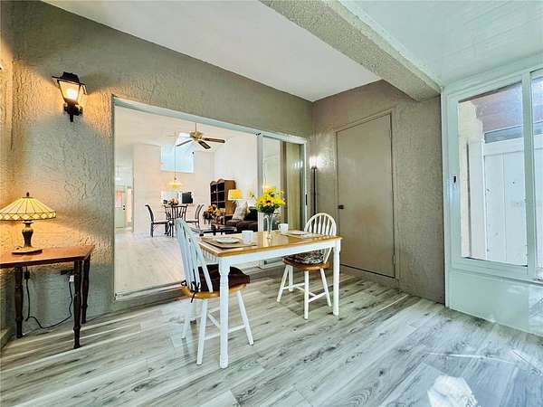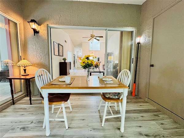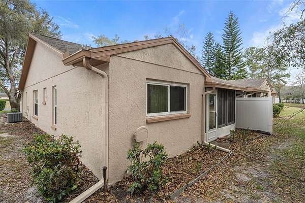 Price Reduced!!! Welcome to this impeccably maintained 2-bedroom, 2-bathroom villa located in the highly sought-after 55+ community of Pine Ridge at Sugar Creek Village. Exceptionally situated on a rare side lot, this residence provides enhanced privacy and additional outdoor space--an uncommon and valuable feature within the community. A gated entry and spacious detached garage lead you to a charming front patio, ideal for enjoying your morning coffee or winding down in the evening. Inside, the home offers an inviting open-concept design with abundant natural light, elevated by high ceilings and a skylight that creates a bright, airy atmosphere. The kitchen's convenient pass-through enhances flow and functionality, making entertaining seamless. A dedicated office space overlooks a serene open field, offering a peaceful setting for remote work, hobbies, or reading. The generously sized primary suite features a walk-in closet, a private en-suite bathroom, and sliding glass doors providing direct access to the rear patio. The living room also opens onto this outdoor retreat, perfect for embracing Florida's year-round sunshine. Residents of Pine Ridge at Sugar Creek Village enjoy a robust array of amenities, including a clubhouse, shuffleboard, tennis courts, a heated pool, and a spa--ideal for an active, social lifestyle. The community is pet-friendly, allowing one pet, and is supported by fully funded reserves for added peace of mind. Notable updates include a new roof (2020), AC (2018), replacement windows (half completed in 2007, the remainder in 2023), and new luxury vinyl plank flooring throughout. Beautifully maintained, thoughtfully updated, and attractively priced--this villa is a standout opportunity in one of the area's most desirable 55+ communities. Schedule your showing today!