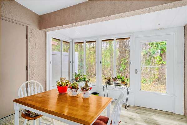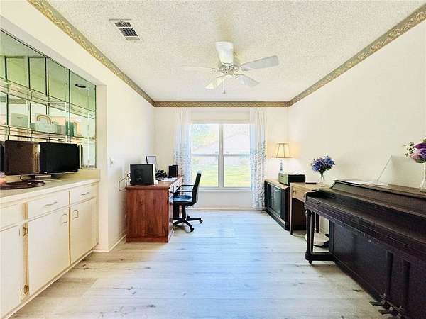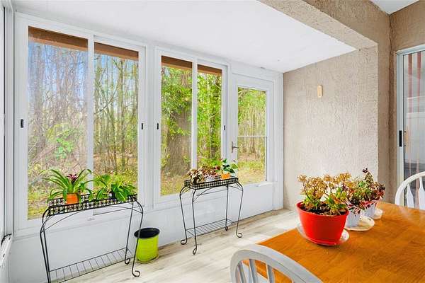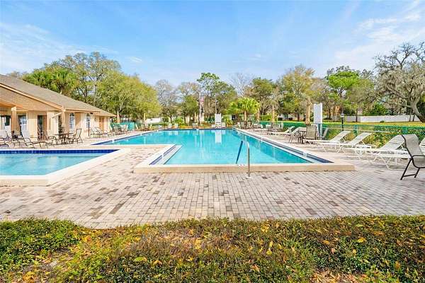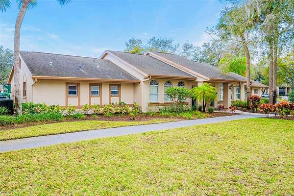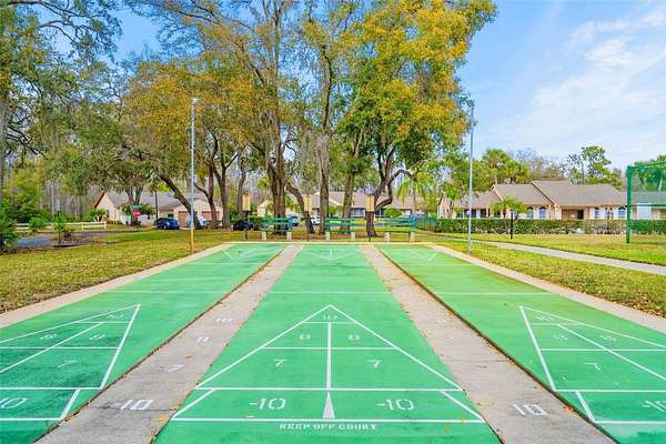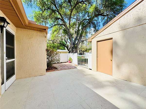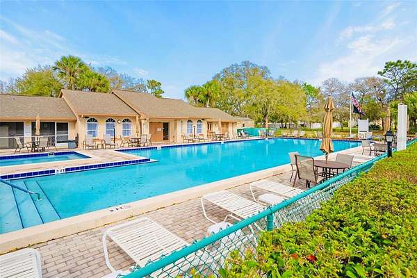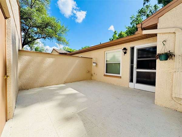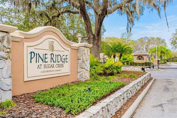 This is your opportunity to secure a well-maintained villa in the desirable 55+ community of Pine Ridge at Sugar Creek Village. Offering true maintenance-free living, this home is ideal for buyers seeking comfort, convenience, and a relaxed Florida lifestyle without the upkeep. Community amenities include a heated pool, spa, recreational facilities, and comprehensive services such as cable, internet, exterior and grounds maintenance, pest control, water, sewer, and trash providing both value and peace of mind. Privately situated within the community, this 2-bedroom, 2-bath villa offers a rare combination of privacy and outdoor space, with no front or rear neighbors, just open green space for a more serene setting. The home is optionally partially furnished, making it easy for a buyer to move right in or personalize to their taste. A gated entry and detached garage lead to a welcoming front patio that functions as a private courtyard, perfect for morning coffee, entertaining guests, or enjoying Florida’s year-round sunshine. Inside, the open-concept design features soaring ceilings and a skylight that fills the living space with natural light, creating a bright, airy feel. The kitchen offers stainless-steel appliances, and a convenient pass-through to the main living area, enhancing flow and functionality. A versatile flex space overlooking the open field provides the perfect setting for a home office, reading nook, or hobby area, an increasingly desirable feature for today’s lifestyle. The primary suite includes a walk-in closet, private en-suite bath, and sliding glass doors that open to the rear lanai. With access from both the living room and bedroom, the indoor-outdoor connection is seamless while still maintaining privacy. The lanai is windowed and screened so it can be enjoyed year around regardless of the weather. Recent updates include a freshly painted patio, roof (2020), replacement windows (2007 & 2023), and luxury vinyl plank flooring. Conveniently located near Highway 52 with quick access to the Suncoast Parkway and Veterans Expressway, this home offers easy connectivity to the greater Tampa Bay area. Medical facilities, shopping, dining, and daily conveniences are all just minutes away, with Gulf Coast beaches close enough for a spontaneous sunset dinner.