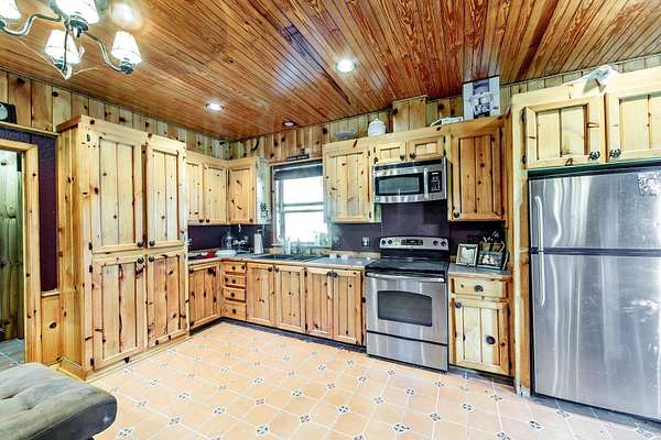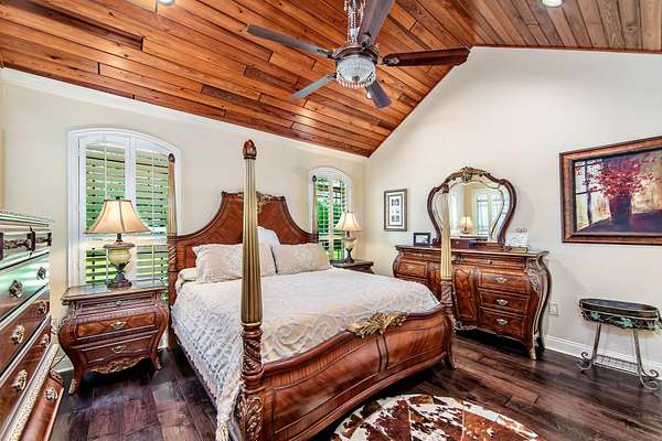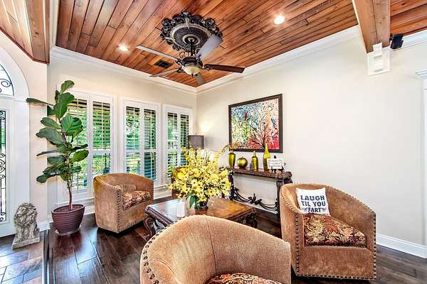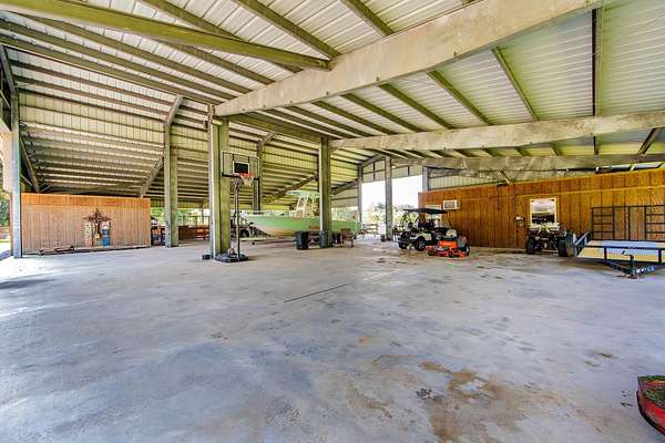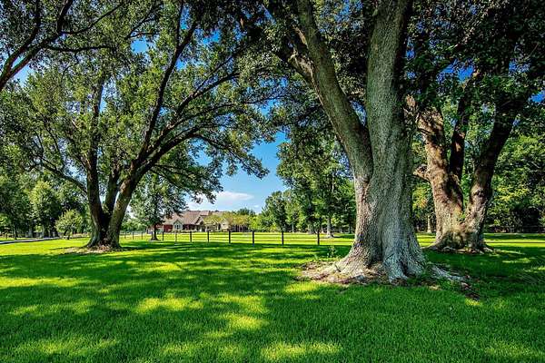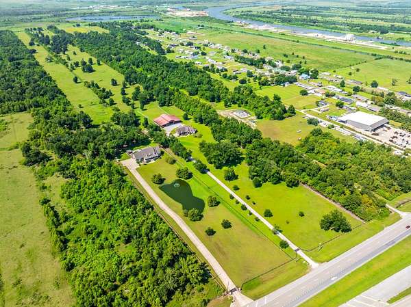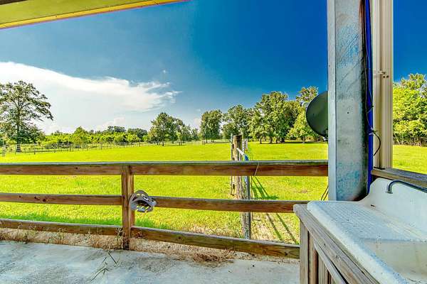 This is more than a home - it's a statement. A modern ranch retreat where craftsmanship meets comfort, set on 31+ private acres wrapped in mature shade trees, wide skies, and that unmistakable sense of freedom. Inside, no corner was overlooked. Think chef's kitchen with a 6-burner WOLF gas range, farmhouse sink, granite counters, and custom Berth cabinetry built to last generations. Soaring ceilings (wood in the living and bedrooms), crown molding throughout, plantation shutters, a dedicated office, and a cozy gas fireplace make everyday living feel anything but ordinary. Step outside and it gets even better: an open deck with a towering wood-burning fireplace - the ultimate backdrop for sunset cocktails, morning coffee, or just pretending you're in a scene from Yellowstone. And then... the barn. Not your grandpa's barn. This absolute fortress (109' x 80', built on a post-tension slab with galvanized beams) has horse stalls, a tack room, climate-controlled garage, storage, an outdoor kitchen with apartment potential, and enough covered space to host anything from crawfish boils to full-on weddings. It's built solid, it's built big, and it's not going anywhere. Practical luxury? Check. Two A/C units, three tankless water heaters, a 30KW diesel generator that powers everything, plywood sheathing behind every wall (no stud hunting here), and underground fencing so your four-legged friends stay safe without spoiling the view. Top it all off with a 30-year architectural-grade roof built to stand strong against the elements - peace of mind above it all. This is the kind of property where life slows down - in the best way. A place to breathe, entertain, raise livestock, or just live boldly on your own terms.