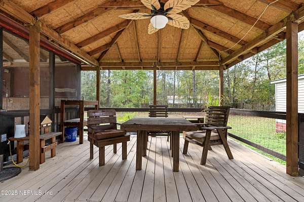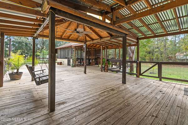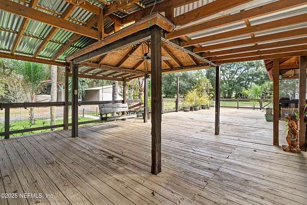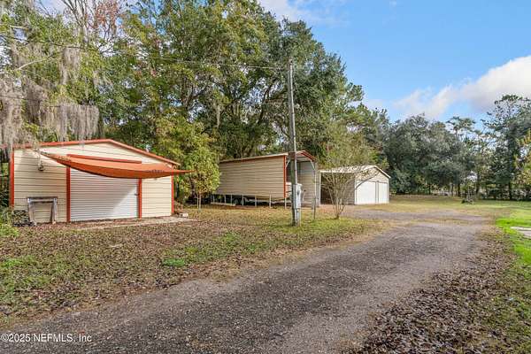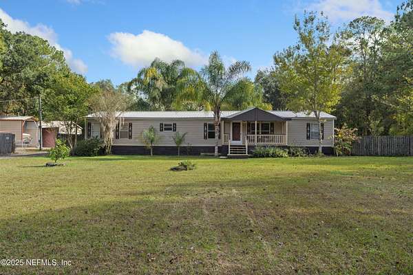 Discover the perfect blend of privacy, space, and functionality with this well-kept doublewide home situated on 2.25 beautiful acres in the desirable Yellow Bluff Road area. Whether you're looking for room to spread out, space for hobbies, or a property that's truly move-in ready, this one has it all.Spacious Doublewide Home offering comfortable living with a practical layout and plenty of natural light. Free-Standing Metal Garage - ideal for storing vehicles, recreational equipment, or tools. Additional Covered Parking for extra cars, boats, or RVs. Separate Work Shed perfect for hobbies, storage, or a small workshop setup. Expansive Back Wooden Deck featuring both open and shaded covered areas, creating the perfect outdoor living space for relaxing, grilling, or entertaining. Horse Barn for those seeking rural flexibility-bring your horses or enjoy it as additional storage or conversion space. 2.25 Acres of usable land, offering privacy, room for gardens, play area.