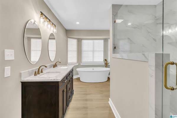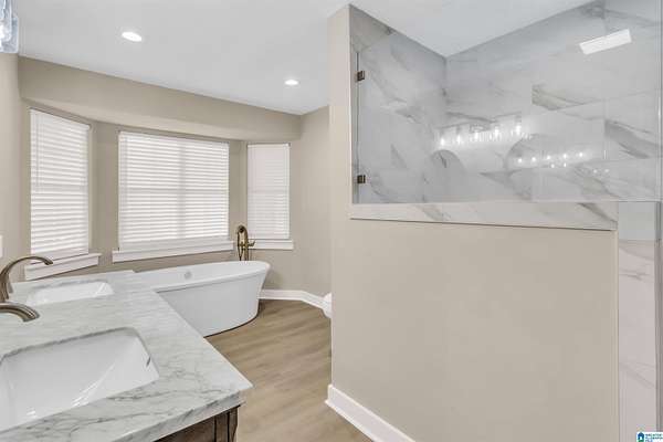 - Garden Tub, Linen Closet, Recess Lighting, Tub/Shower Combo, Walk-In Closets