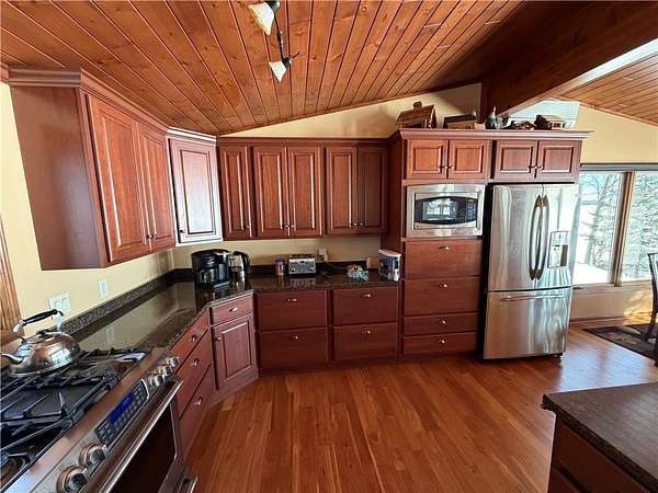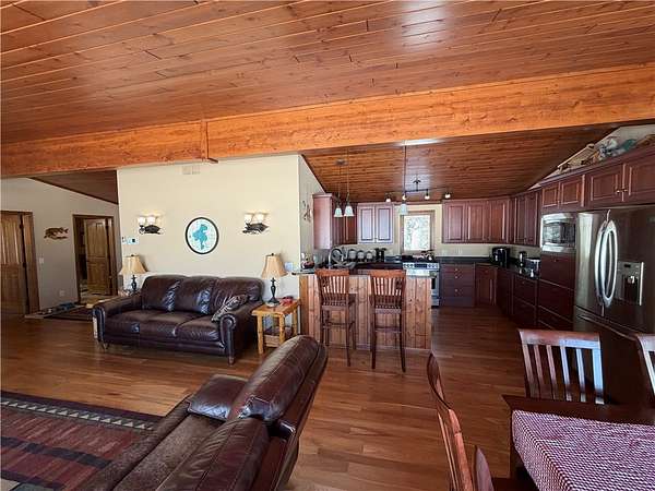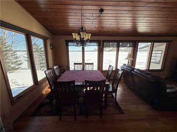 If your looking for privacy on one of the Northwoods finest lakes, this is it! Features include, 2.65 acres, approximately 500' of sand beach frontage, just a few steps to the waters edge, 3-bedrooms, 1-bedroom does not have a closet, open concept main floor living room/kitchen & dining area, main floor master suite with great view of clear water Lost Land Lake, main floor laundry, large lower level family room with walkout to waters edge, 3-car heated pole shed with shop, 2-car detached garage with heated/cooled shop, garden shed for extra storage, all just minutes away from downtown Hayward with all the amenities!